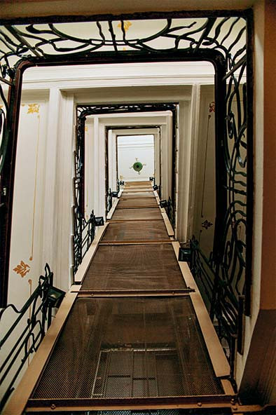 О том, каким он был, можно прочитать в воспоминаниях одной из внучек Якова Толстого Ксении Александровны Немцевич: «Все потолки были расписаны альфрейщиками, не только в квартирах, но и в парадном. Двери были дубовые, выходящие на лестницу, с вставными витражными стеклами, в стиле тогдашнего, модного стиля “модерн”. Перила были тоже из натурального полированного дуба, решетки литые, чугунные, в виде растений с бронзовыми листьями. Лифт внутри был отделан красным деревом,