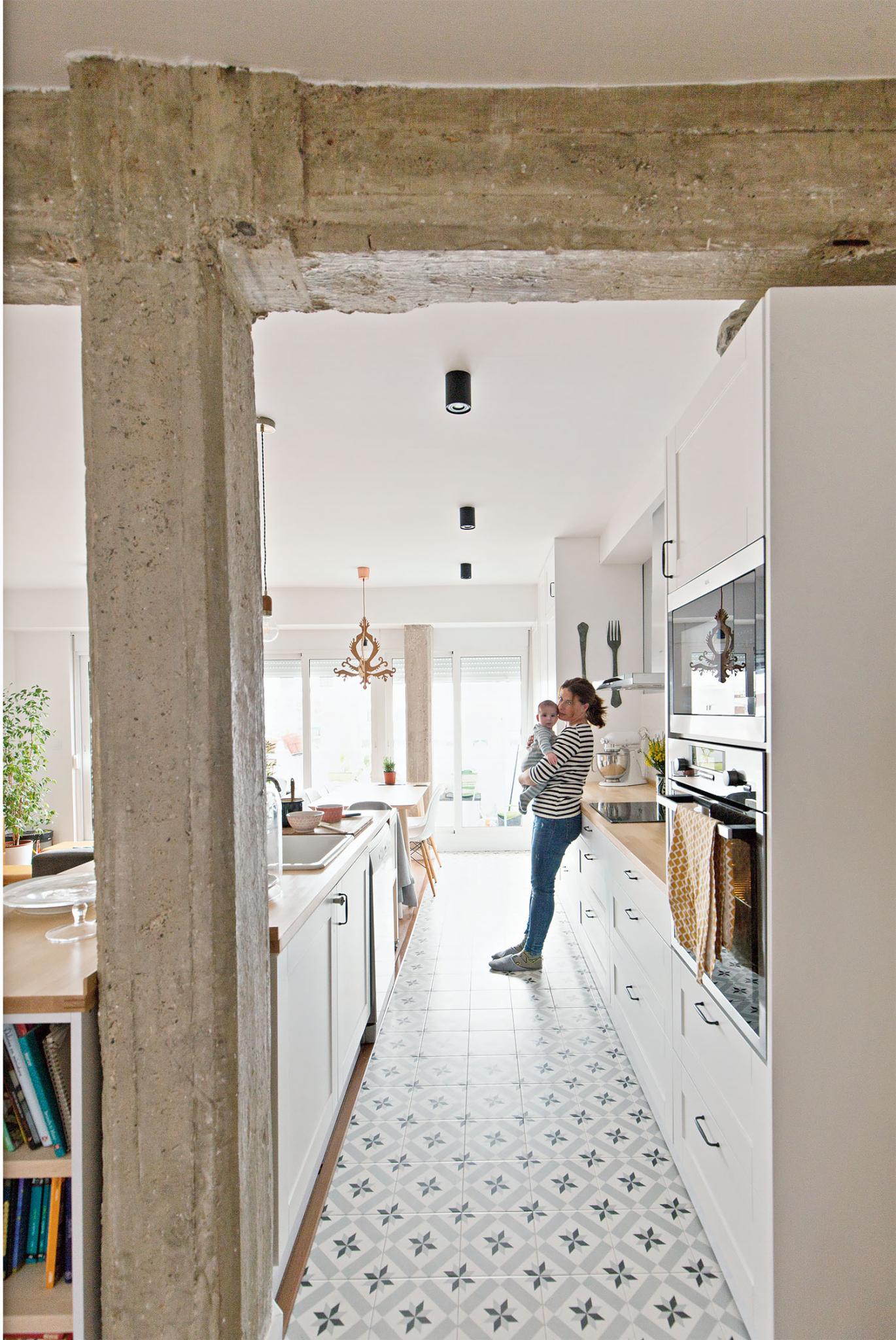 Это наша первая собственная квартира, мы переехали сюда всего месяц назад. У нас был дизайнер, но нам не понравилось, что он предлагал, показалось старомодным. В итоге весь дизайн мы придумывали сами. Мы оставили старинные бетонные балки необработанными, журнальный