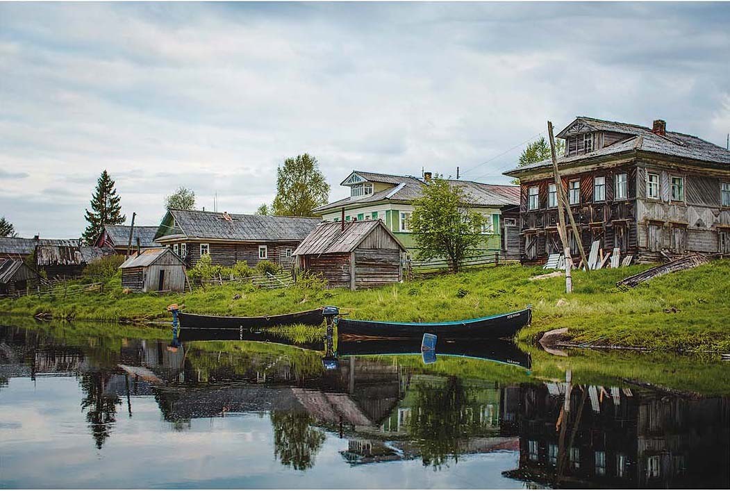 Величественные деревянные дома, посеребренные временем и карельской непогодой, лодки на берегу. Дети идут в школу, дымок вьется из труб — топятся печи. Жизнь идет своим чередом.