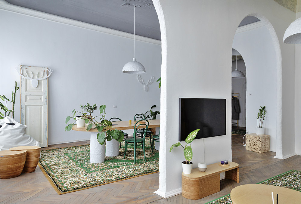 Когда я в первый раз пришел в эту квартиру, просто не мог поверить, что люди так когда-то жили. Как будто ты во дворце, а не в много этажном доме. Высоченные потолки, гипсовые карнизы и розетки, дубовые двери. Все это примерно по цене новостройки в московском районе Коммунарка. Бесценный старый жилой фонд — в прямом смысле слова. Он не ценится, люди хотят новое жилье. И тогда я придумал, что нашей миссией в этом проекте будет экономичный ремонт исторического интерьера. Я поставил себе нереальную цель: отремонтировать 150 квадратных метров за 500 тысяч рублей. Сначала мы хотели перекроить пространство и сделать несколько гостевых комнат, а потом решили оставить огромную гостиную, в которой будем тусить с нашими гостями, приехавшими из Москвы и других мест (а ночевать они могут в отеле по соседству). Перед началом ремонта к нам зашел друг, архитектор Степа Липгарт (он работает в классическом стиле), и сказал: «Костя, для меня, как для архитектора, самым ценным в таком проекте было бы сохранить историческую планировку, главное достоинство этой квартиры».