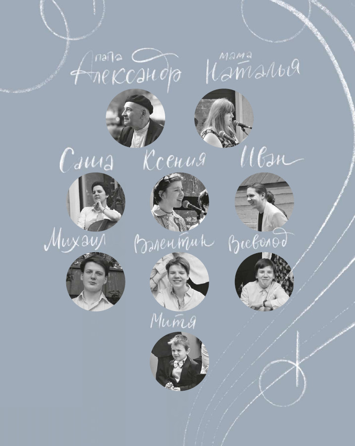 Наталья. Папа у нас музыкант. Настоящий. Это такой человек, который берет инструмент, и из него рождается музыка. Я так не умею, хотя музыкальное образование у меня есть. Я всегда мечтала быть рядом с таким человеком, чтобы не клопов выискивать, а все время удивляться ему, радоваться. Cтали рождаться дети, и у нас совершенно не было от них никаких ожиданий. Мы не собирались выращивать из них музыкантов или кого-то еще. Но старшая, Саша, все время рисовала и пела еще в коляске. И однажды мы пошли покупать ей краски на Никольскую и увидели объявление, что в Театр Покровского набираются поющие дети. И мы пришли и остались, а потом привели туда всех остальных детей. У Вани обнаружился абсолютный слух, он приходил с репетиций и играл арии из опер двумя руками. И стало понятно, что у детей-то — Божий дар, и похоронить его нельзя.