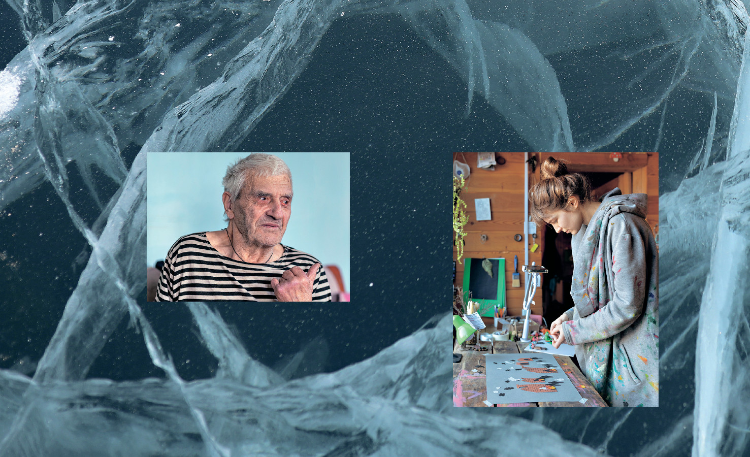 В огромной меховой шапке, высокий, ускользающий как вода, видный отовсюду, как маяк, Никита ведет нас в маленький домик, где с девятилетней дочкой сейчас живет художница Марина Никиташенко. Она вообще из Питера, уехала оттуда почти год назад — решила посмотреть, какие есть тату-студии в стране, и конечной точкой путешествия выбрала свою малую родину — Колыму. На Ольхоне остановилась, пожила в сап-лагере неделю, думала уже ехать дальше, но ребята из лагеря стали уговаривать: «Оставайся, куда ты собралась? Там на Колыме медведи, холода». «А я во всем летнем, как уехала из дома. У меня в рюкзаке только тату-оборудование и краски, —