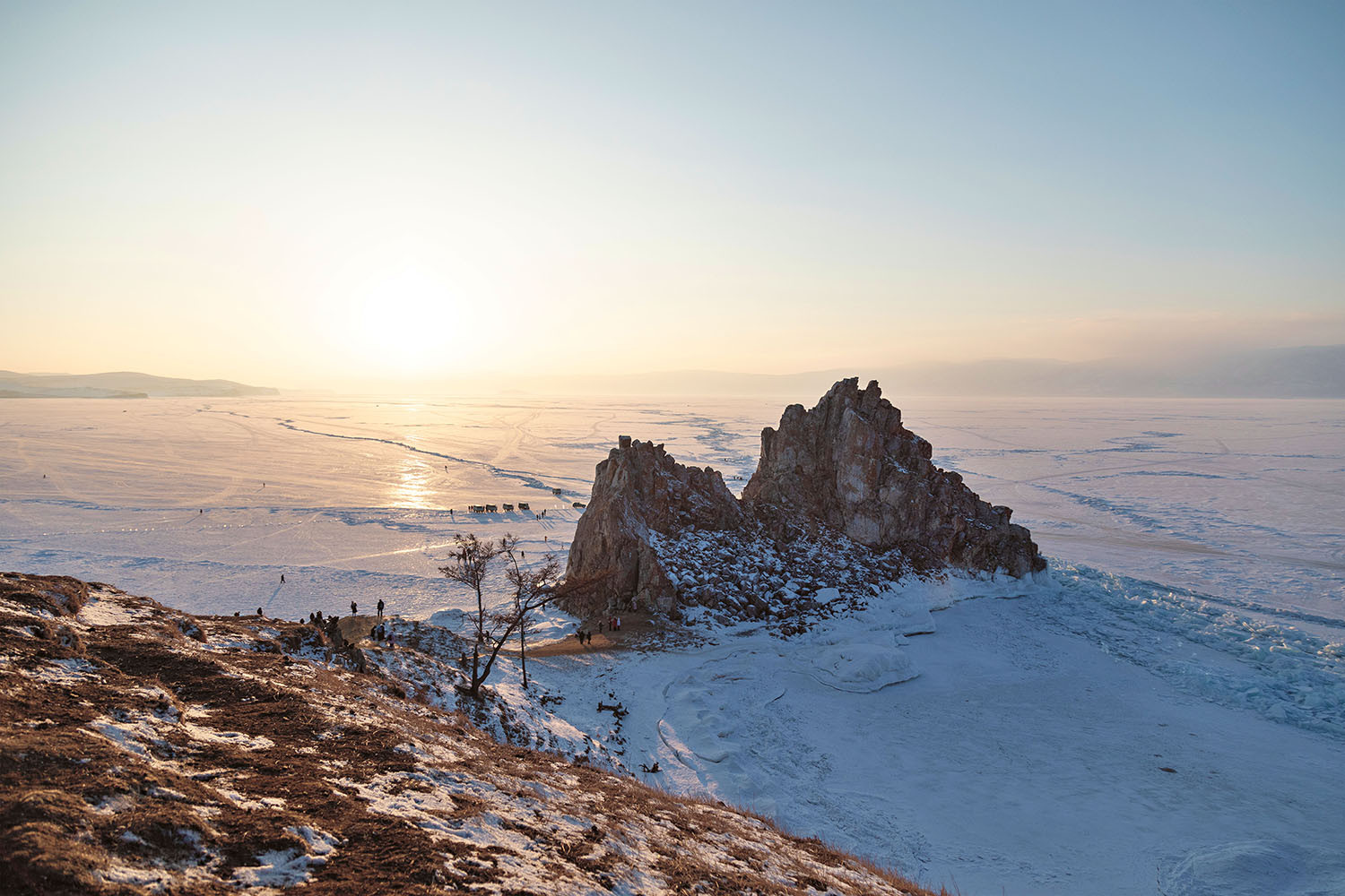 Оказаться на Ольхоне — все равно что слетать на Луну. Особенно зимой. Ты несешься на машине по пустой дороге, оставляя позади большую землю. За спиной Иркутск. Горы, поросшие лесом, сменяются сопками, присыпанными снегом. Ни деревень, ни людей, совсем немного встречных машин. Четыре часа дороги — и тебя отпускает земное притяжение. Ты подъезжаешь к кромке земли, оказываешься на льду. Это космос. Легковушки, «буханки», судна на воздушной подушке… Укутанные люди стоят, лежат, скользят по льду — замедленно, как астронавты.