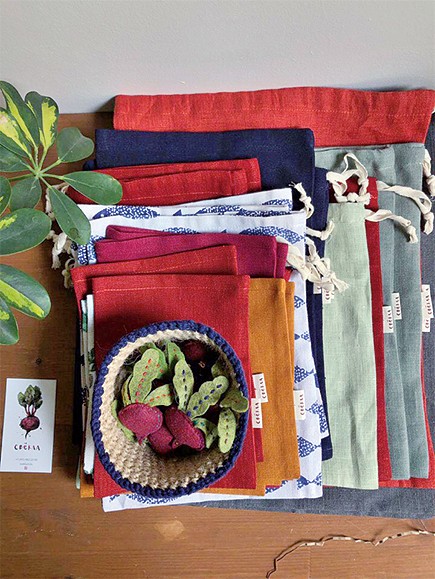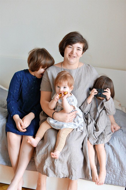 Для своего проекта Саша придумывает и производит свободные платья природных цветов, юбки, сумки-несушки и детскую одежду из льна, крапивы, шерсти и даже эвкалипта. Живет с семьей между домом с курочками и собаками в Зеленогорске и комнатой в Петербурге.