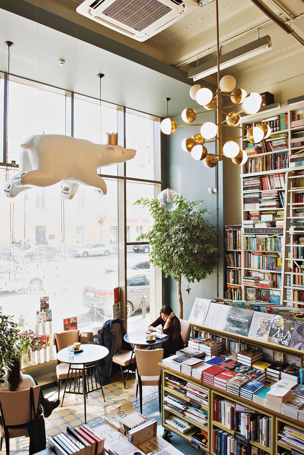 Да и магазином его назвать сложно. Два зала с бесконечными оливковыми полками и пестрыми корешками, запахом кофе, верхними этажами с пространством для работы и чтения, хипстерскими журналами, летающими медведями и лимонным деревом — кажется, это место выдернули из страниц фантастического рассказа и поселили на Литейном проспекте. Мне здесь всегда тепло и уютно, даже когда за окном типичный Питер.