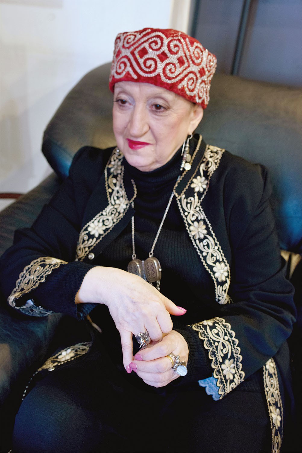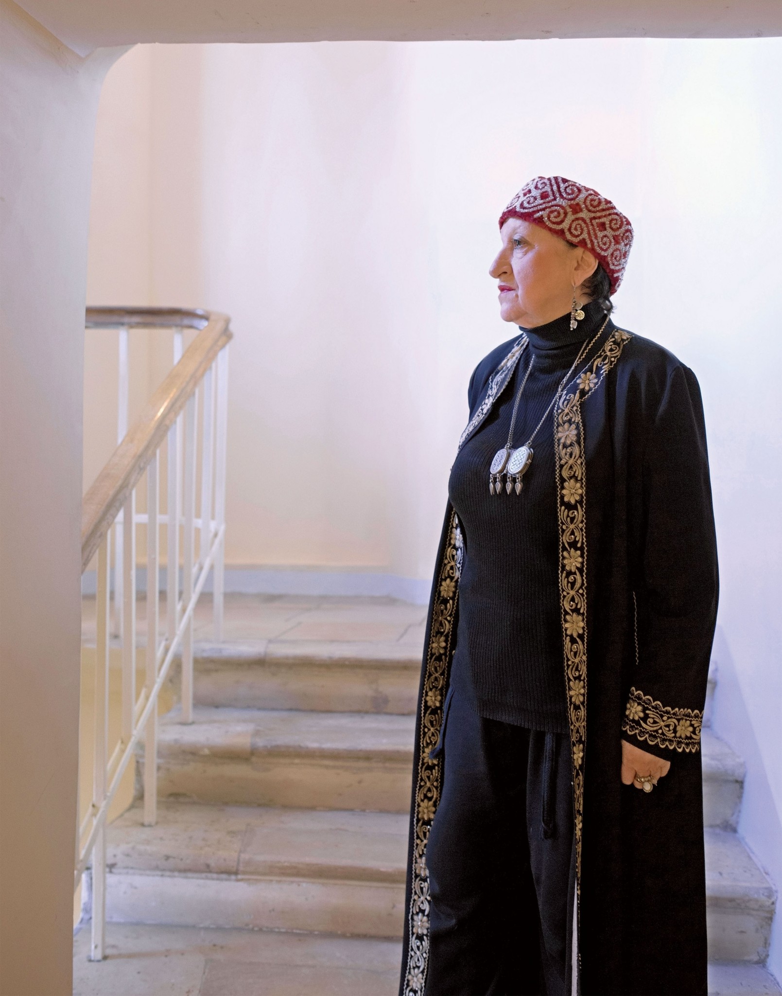 Татьяна Христофоровна Метакса, первый заместитель генерального директора Музея Востока, работает в музее почти 50 лет. Греческая фамилия Метакса — от отца, от мамы — украинские корни; вышитые золотом тюбетейки, восточные халаты со сложным узором, дагестанские кольца на пальцах, ажурные подвески — поклон своей работе: «Наряжаюсь, когда у нас открываются выставки. Я всегда внимательно слежу за тем, какую выставку мы готовим, какой стране она посвящена, что изображает художник, — для того, чтобы соответствовать. Это важно для меня».