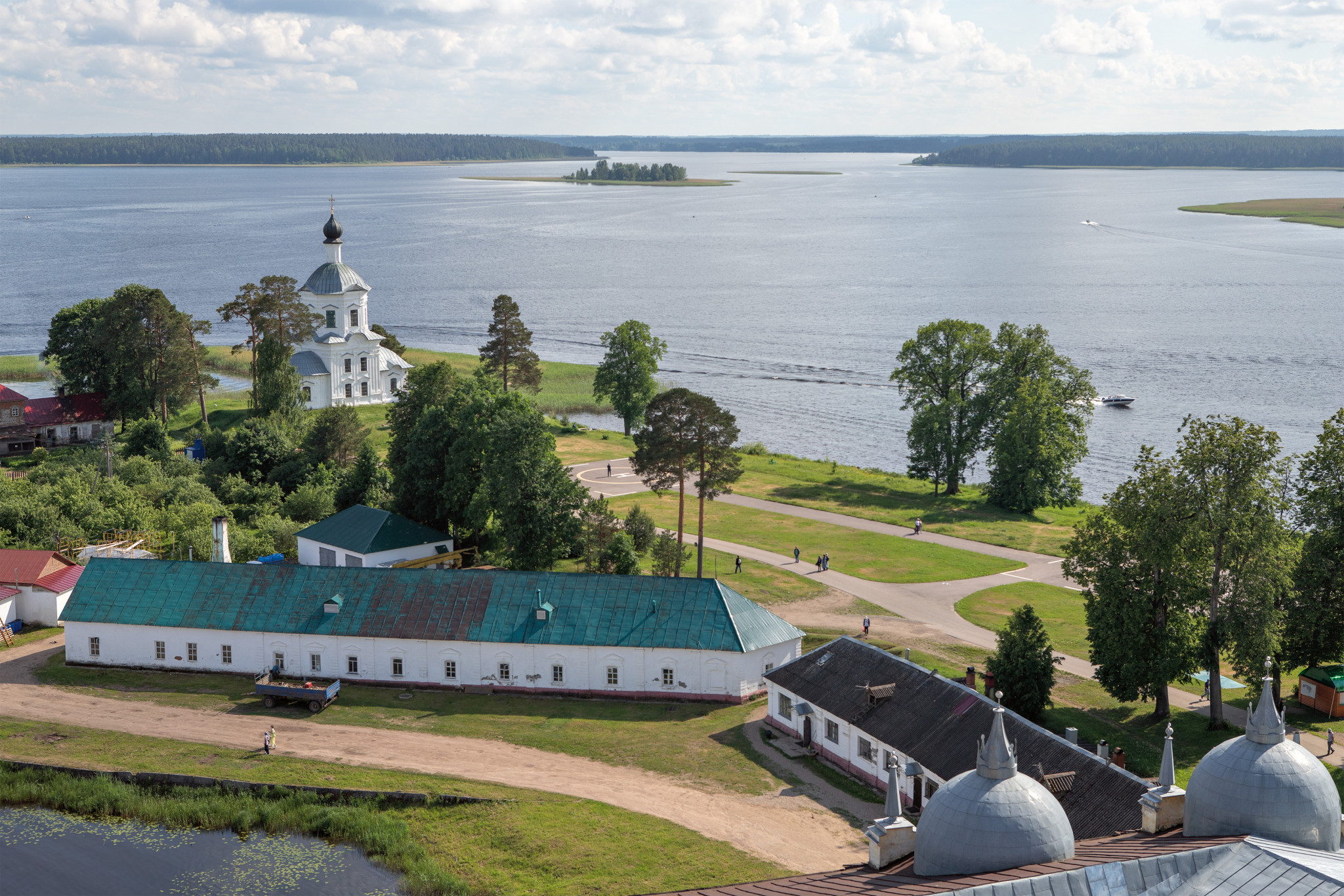 Это место, с которого монастырь начинался. Сюда, в 1527 году, пришел преподобный Нил. И вот здесь, на этой горке, на месте, открытом всем ветрам, выкопал себе пещерку, где пережил первую зиму. А потом, уже на следующий год, построил деревянную келью и рядом деревянную часовенку в честь Богоявления Господня. Потом в полу часовни была выкопана могила, там преподобного Нила и похоронили в 1555 году. А позднее на месте кельи построили двухъярусный каменный храм: нижний этаж — во имя Покрова Божией Матери, верхний — во имя Иоанна Крестителя. В 1939 году этот храм взорвали и перед воротами монастыря сделали дамбу из развалин Покровского храма, по которой приходят в монастырь. А до ХХ века сюда можно было добраться только по воде.