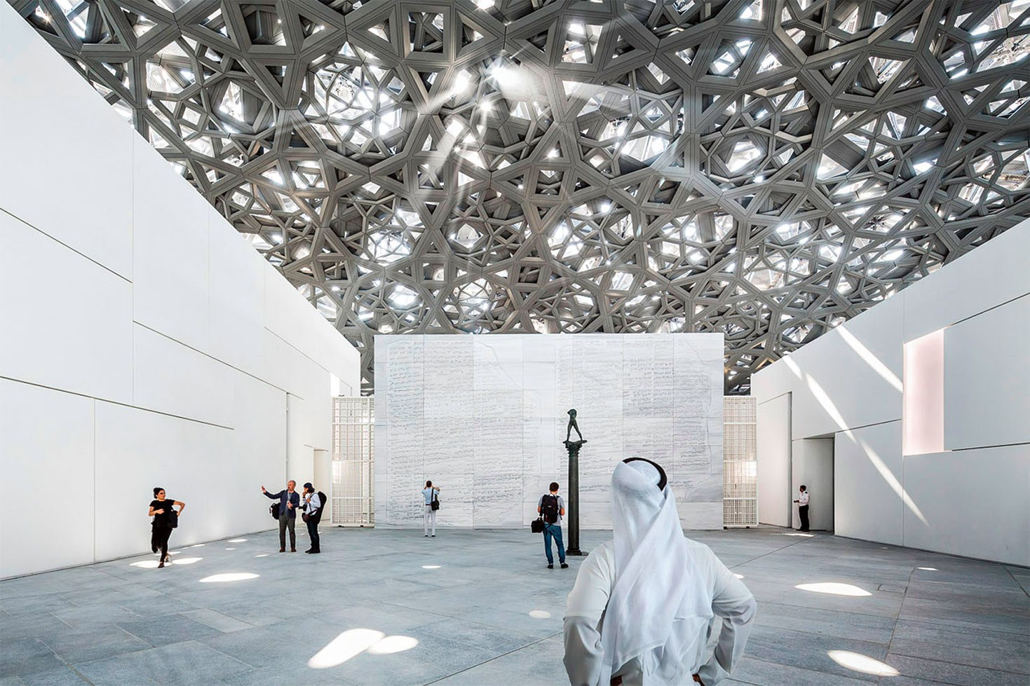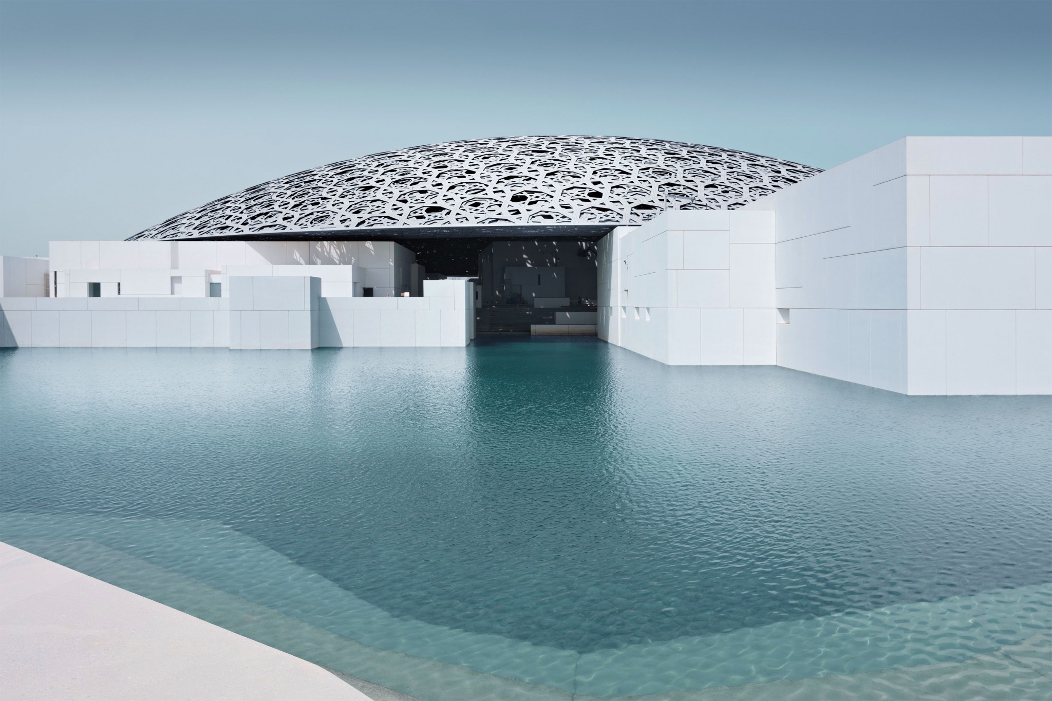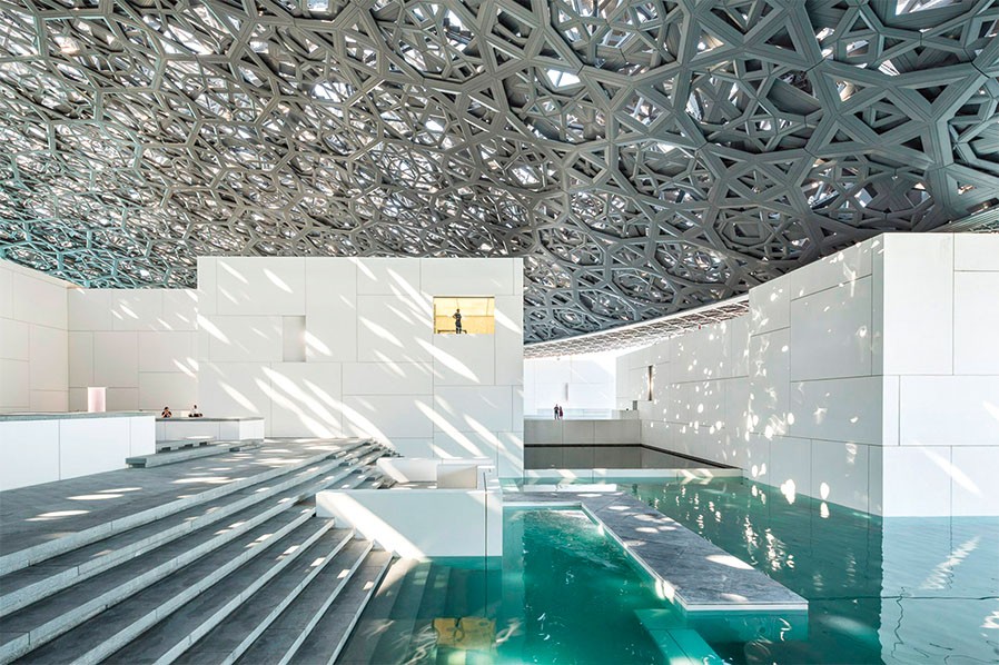 Перед строителями нового Лувра стояли две взаимоисключающие задачи — защитить экспонаты от морского ветра с Персидского залива и сделать так, чтобы посетители чувствовали его на коже. Решение — ажурный купол — стало отличительной чертой музея, по которому его узнают на любом фото в инстаграме (соцсеть признана в РФ экстремистской и запрещена) и на архитектурных сайтах. Комплекс зданий, построенных по проекту французского архитектора Жана Нувеля, открыли в 2017 году на острове Саадият.