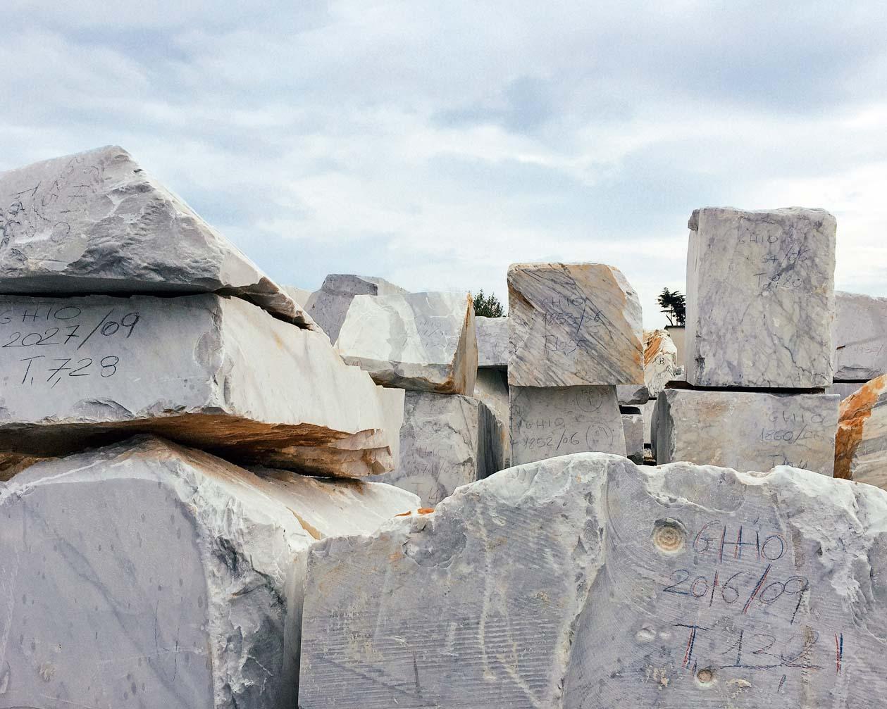 При Юлии Цезаре из ценного каррарского мрамора строили дома патрициев, из него же вызволил своего «Давида» Микеланджело, современные скульпторы покупают этот дорогой белоснежный мрамор на аукционах. Итальянские дизайнеры Сара Феррон Чима (Sara Ferron Cima) и Массимо Кьуффи (Massimo Ciuffi) три года назад открыли в Карраре Bloc Studio, в которой создают предметы из мрамора и сотрудничают с дизайнерами со всего мира.