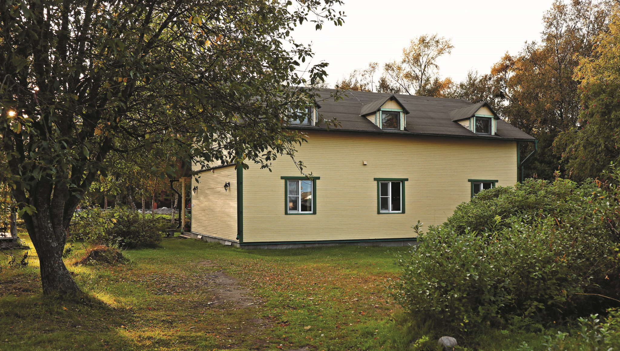 То ли башни средневекового города, то ли шлюз, который притормаживает течение дороги-реки, — эти два дома стоят друг напротив друга. Поворачиваешь направо, поднимаешься по ступеням, ныряешь в калитку — и все, сразу вспоминаешь «Мы все из Бюллербю» Астрид Линдгрен или «Вафельное сердце» Марии Парр. Тропинка, сложенная из камней, бежит по стриженой, но не слишком, траве, под ивой стоянка велосипедов, на дереве качели, двое малышей носятся по саду. Входим в одноэтажный вытянутый домик, который с улицы не сразу и разглядишь — видна только крыша. Нас встречает хозяйка Екатерина Григорьева. Начинаем разговор утром, а продолжаем вечером, когда возвращаемся в баньку, — это наш последний вечер на Соловках, завтра в обратную дорогу. Утром угощаемся отличным кофе (лучшим на острове), а вечером съедаем, пожалуй, самый вкусный ужин за всю нашу поездку. Наверное, так и должно быть в семейной гостинице с названием «Приют».