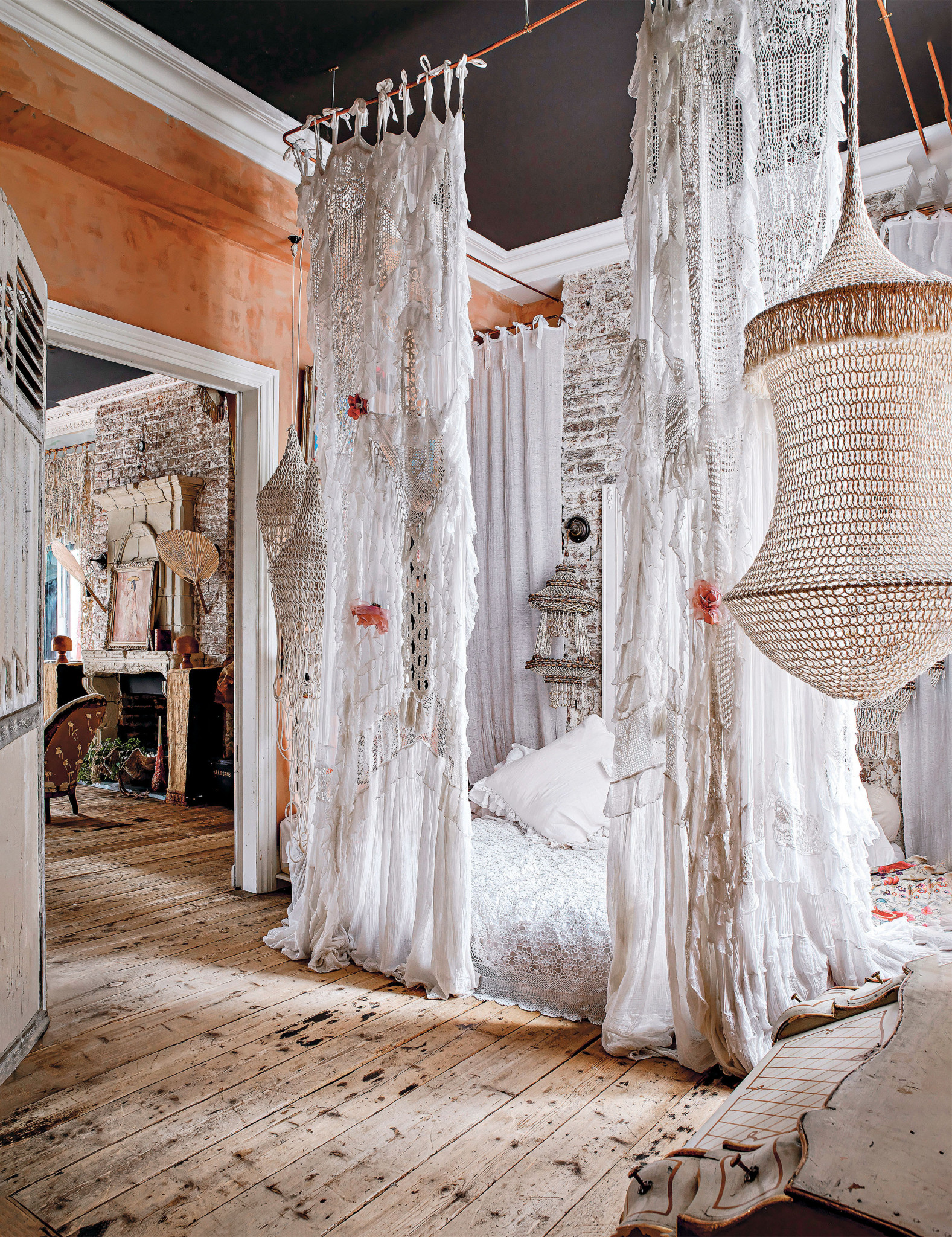 В 15 лет я бросила школу и начала работать в модных магазинах. Как-то я познакомилась с ребятами из балетной школы, и мы договорились, что я буду шить им костюмы и декорации. Потом друзья стали просить: давай ты оформишь мне квартиру? Так я занялась дизайном и делаю это до сих пор. А еще шью необычные подушки и «домашние платья» — длинные портьеры в венецианском стиле.