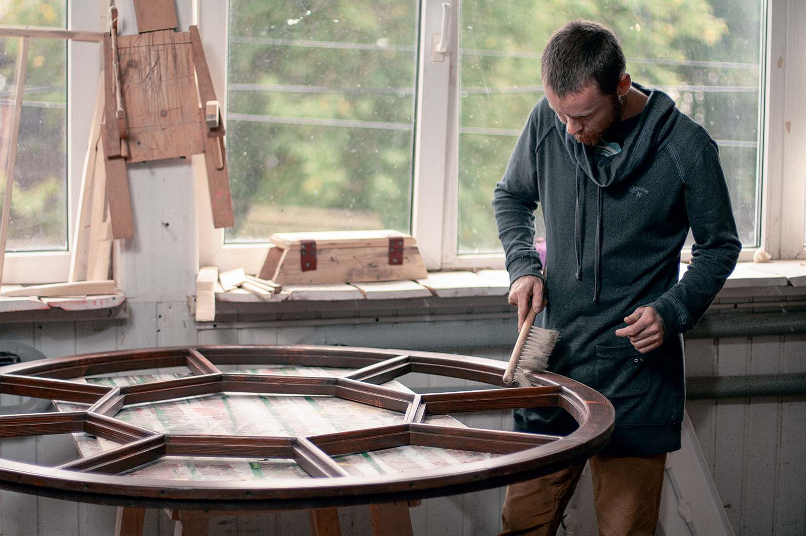 Сергея Самолетова в Тарусе знают, кажется, все. Он проводит мастер-классы по столярному ремеслу, устраивает детский лагерь, строит соломенные дома и украшает город к праздникам деревянными объектами.