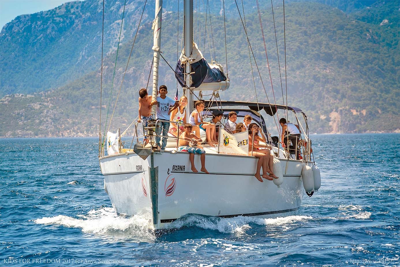 Одно из самых замечательных моих приключений последних лет — проект Kids4freedom. Его придумал в 2002 году Бернхард Блаха, владелец судовой чартерной компании. Дети, оставшиеся без родителей в силу разных обстоятельств, ходят под парусами и участвуют в любительских регатах. Сто детей со всех стран мира — из России, Хорватии, Австрии, Польши, Германии, Турции на десяти лодках идут из Мармариса в дикие, зеленые бухты, как будто созданные для высадки детского