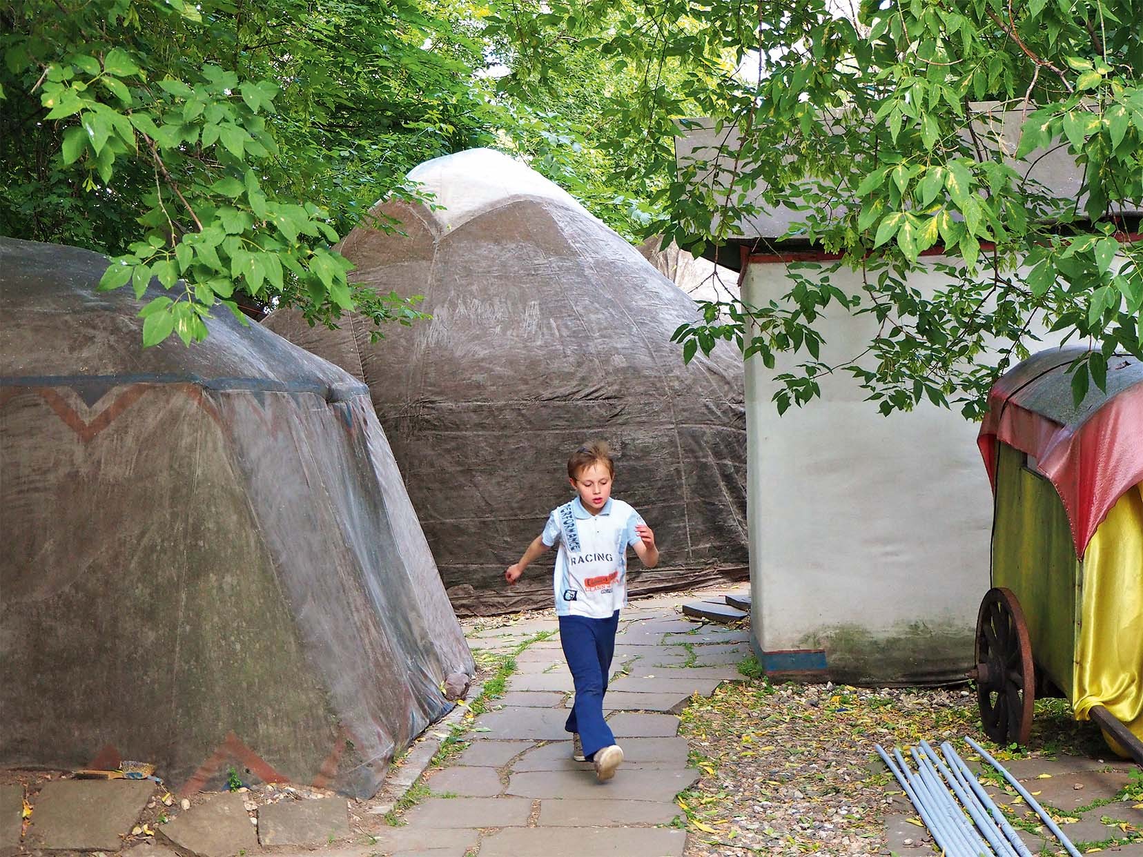 Директор музея, Константин Куксин, ремонтировал во дворе юрту. Устроить с ним интервью «как положено», сидя за столом с чашкой кофе, почти невозможно. Можно использовать только метод включенного наблюдения – тот самый, который использует Костя в этнографических экспедициях. Наблюдай, вживайся в среду, не мешай людям заниматься своим делом. Дел много. За 14 лет существования музей стал образовательным, научным и издательским центром. Детские книги и серьезные исследовательские работы, экскурсии, каждая из которых похожа на захватывающее театрализованное действо, экспедиции в самые недоступные места планеты, благотворительный фонд, помогающий оленеводам Тувы. Все силами горстки сотрудников и волонтеров, ни копейки государственных денег. Между чумов и вигвамов играют школьники. Это летний лагерь при музее. Среди ребят много особых детей, некоторые на колясках. Все оживленно обсуждают предстоящий спектакль, хохочут, примеряют костюмы.