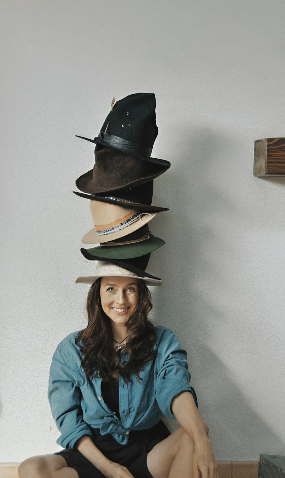 Деревянное шале с панорамными окнами, смотрящими на горы, — одновременно дом и мастерская Оли Совкинсон. Свалять шерсть, спрессовать, распарить, потом — тут мы почти вздрагиваем — поджечь. Легко, весело, держа на руках малыша Элиота, наша героиня рассказывает про этапы изготовления шляп, показывает головные уборы, которые могла бы носить Хелена Бонем Картер, и делится своей теорией о шляпе-компаньоне.