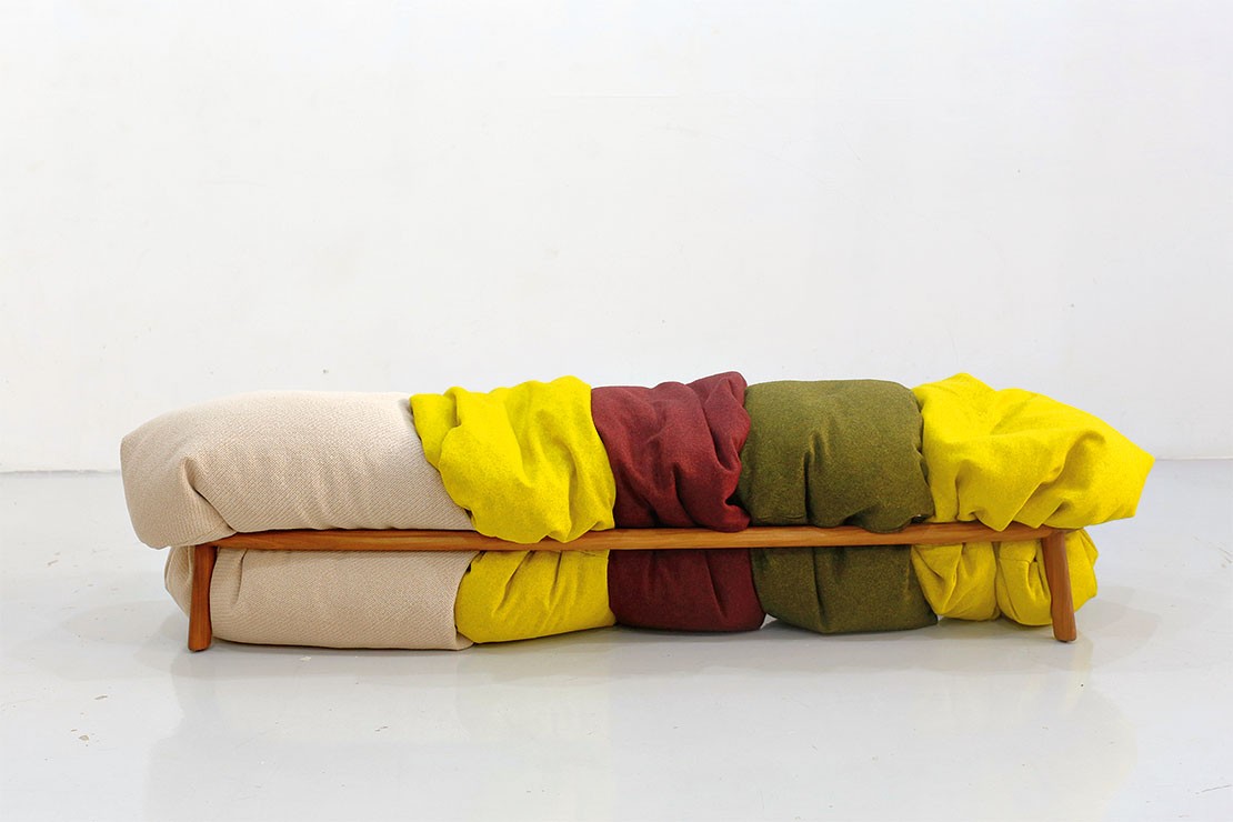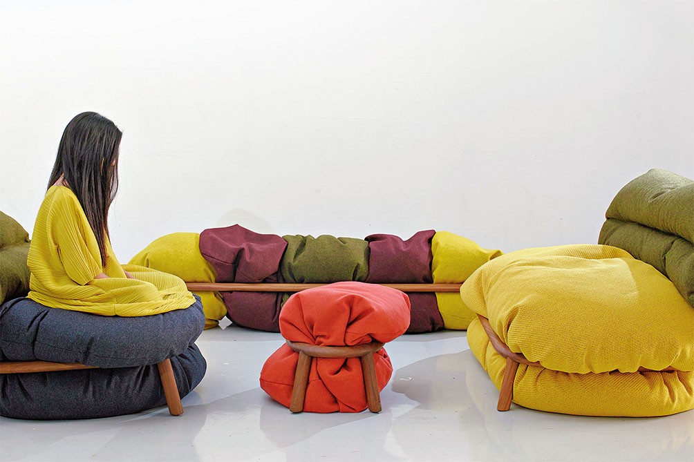 Первое, на что обращаешь внимание в работах Анастасии Нистен, — цвета. Ее мягкие «тролли» — пуфы, кресла и банкетки из коллекции Troll — обнимают смотрящего еще до прикосновения к ним благодаря теплой палитре и текстилю из натуральных ливанских полотен. Текстура тканей одновременно похожа на царапающий лен и мягкую шерсть. Со стороны кажется, будто Нистен зафиксировала всплеск масляных красок в предметах. Она не боится ярких оттенков и смело сочетает их между собой. Правда, так было не всегда — в ранних работах Анастасия исследовала различные возможности материалов и эргономику в простых конструкциях стеллажей и стульев, а также в деликатных объектах малой архитектуры — таких, как подсвечник Snowflake — воплощение мечты о снеге человека из страны вечного солнца.