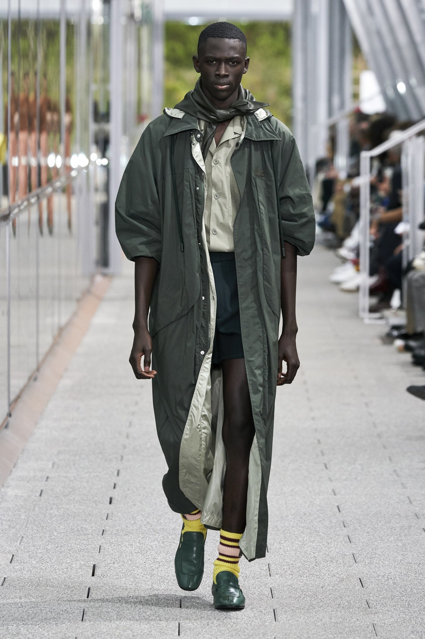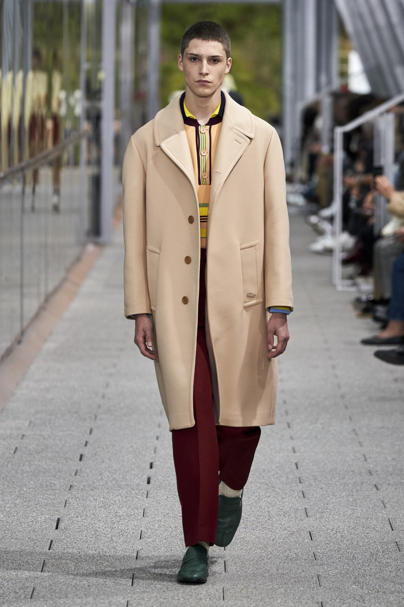Дизайнер Lacoste Луиз Троттер продолжает экспериментировать, при этом бережно и с нежностью относясь к наследию спортивного бренда. Для коллекции весна-лето 2020 она подняла архивы и пересмотрела эскизы поло, которые Lacoste выпускает с 1927 года — в свое время они полюбились Джону Ф. Кеннеди-младшему и звездам мирового тенниса. Увеличенные воротнички, яркие полоски на рукавах, оверсайз-пропорции — все это получилось одновременно ностальгично и современно. Троттер удается мастерски выбирать нетривиальные цвета и гармонично сочетать их в одном образе: чего стоят светло-светло розовые костюмы и «наряд бойскаута», выполненный в целом спектре бутылочно-зеленых оттенков.