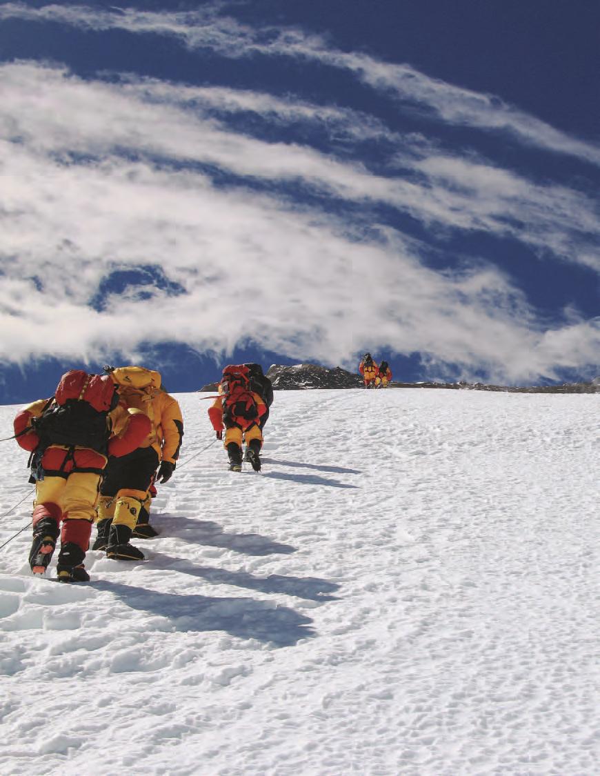 Лагерь на отметке 5800 метров я не очень жалую: он наименее комфортный из всех, к тому же на этой высоте я обычно начинаю чувствовать признаки горной болезни. Но вот мы забираемся в большую палатку / столовую, в которой могут одновременно разместиться шестнадцать человек. Сначала мы располагаемся прямо на полу и переодеваемся в пуховые костюмы – нужно сразу утеплиться, поскольку ледяной ветер и холод проникают всюду. Затем садимся перед газовым обогревателем, вытягиваем к нему ноги, как к камину. Течет неспешный задушевный разговор о жизни, детях, друзьях, о том, что такое хорошо и что такое плохо. Ощущение, что мы не на склоне Эвереста в Гималаях, а в российском поезде дальнего следования: поезд едет, но пассажиры замерли во времени и пространстве.
