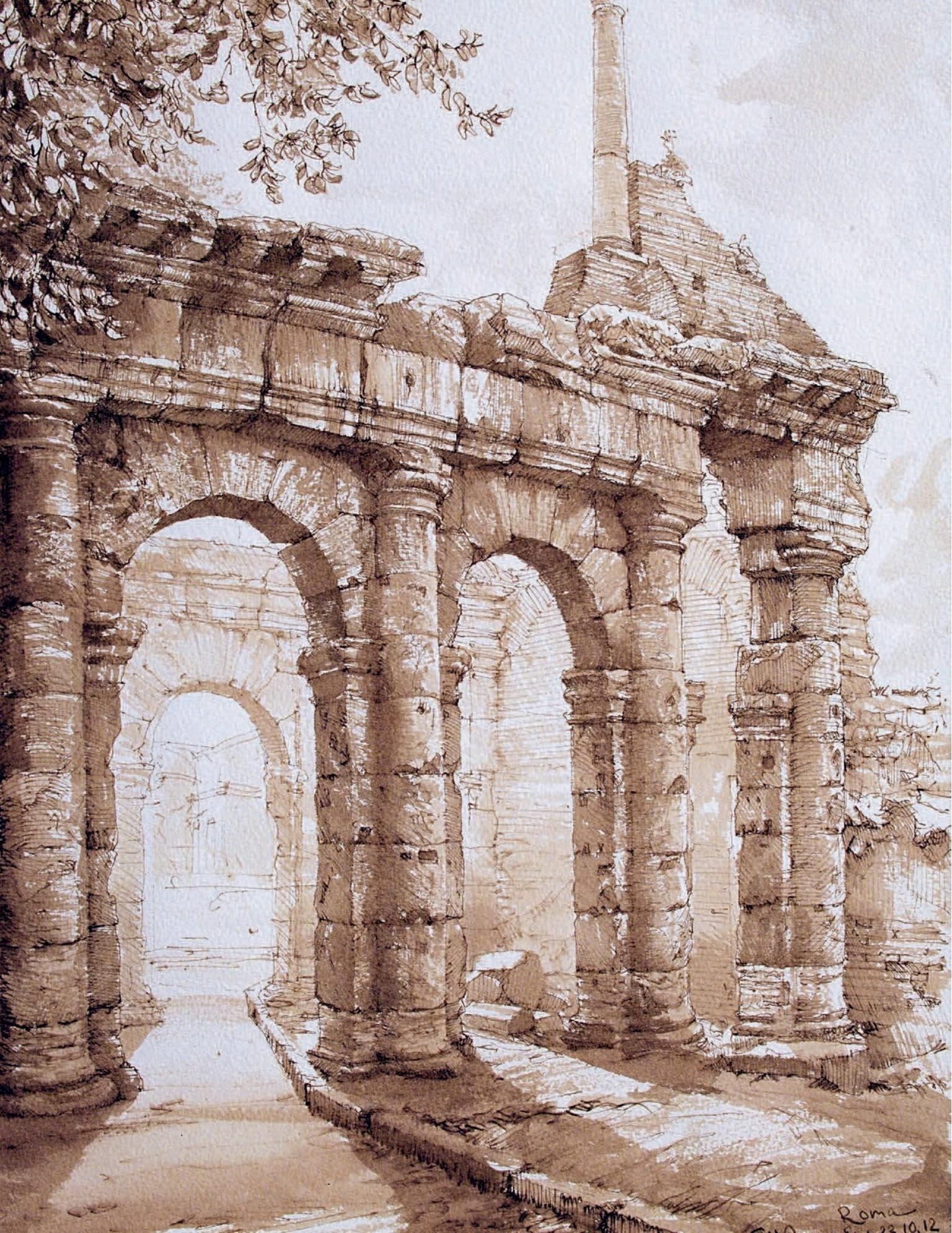 Два вида из Vedute di Roma, лучшей серии портретов города, существующей на свете, сыграли огромную роль в отношениях с Вечным городом. Отношения материализовались. Ведь страсть стремится к обладанию, сколь бы причудлива и эфемерна она ни была. А как овладеть Римом, если он уже даже папе не принадлежит? Да проще простого (то есть сложнее сложного) – воссоздать образ. Коллекционирование и рисование – эти два возможных пути обладания Римом – неожиданно подсказало приобретение пары поздних, а поэтому не слишком редких и дорогих отпечатков Пиранези. Замкнулся некий круг: Пиранези в конце жизни сделал свою серию рисунков, посвященных храмам в Пестуме, гравированную уже после смерти архитектора, в основном его сыном,