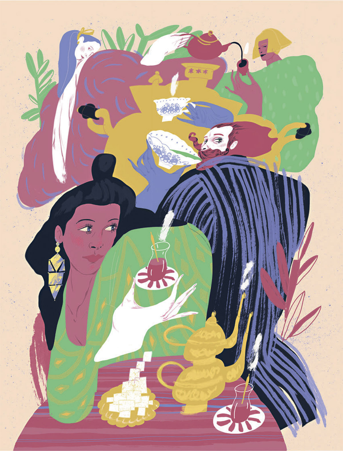 И, быть может, с точки зрения вкуса турецкий чай ничего выдающегося собой не представляет — сильно перезаваренный, просто концентрированный заряд кофеина, натощак такой пить точно не стоит. Но с точки зрения эстетики турецкий чай даст сто очков форы очень многим напиткам: эти парные чеканные чайники, один больше, другой меньше, изогнутые тонкие стеклянные стаканчики, крошечные ложечки и белые блюдца, раскрашенные, будто взмахом маникюрной кисточки, красными лаковыми язычками; кукольные плетеные стульчики в чайных и такие же кукольные миниатюрные кубики сахара, завернутые каждый в свою пеструю бумажку. И при всей миниатюрности эти чайные сервизы тоннами разлетаются по всему миру в виде сувениров.