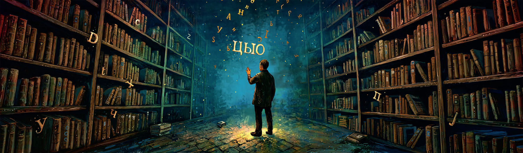 Четверг, книжный вор, Лапин стоял под словом «цыо». Вернее, сочетанием, вряд ли это слово, возможно, транскрипция, Лапин не был уверен. Буквы плавали в постоянном инерционном поле, русский, латиница, хирагана, прочие. Литеры и знаки заполняли атриум, от калейдоскопа мозаики под ногами до витража в куполе, висели в неподвижном воздухе, покачивались. Лапин взмахнул рукой, от «цыо» отделилась «о», ушла книзу, затем набрала высоту — теперь, вероятно, слово.