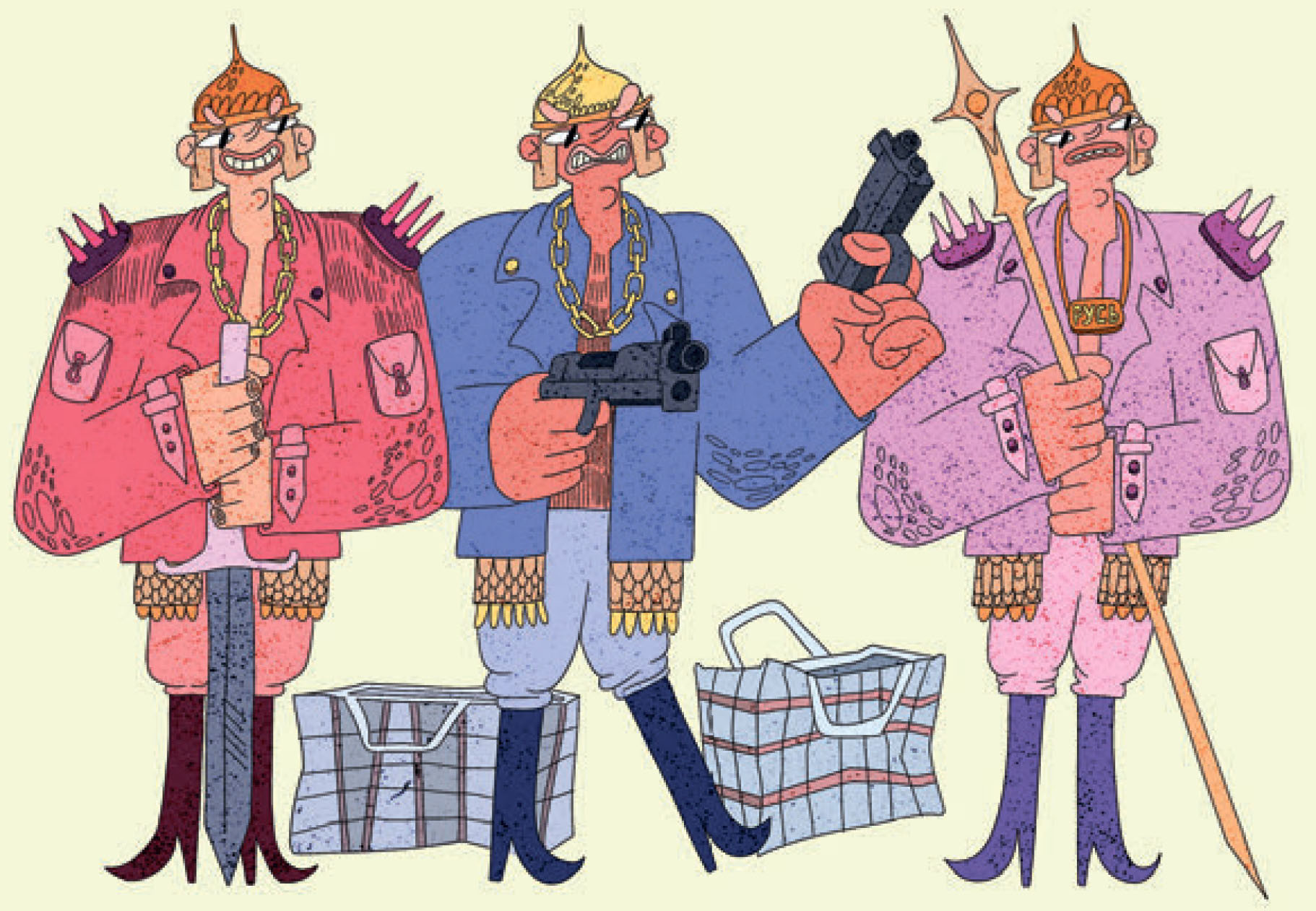 Но он недолго радовался. Пришли к нему в офис три богатыря в кожанках и забрали часть выручки себе. Сказали: «Мы от Волкова Иван Петровича, запомни. Каждый раз будешь ему четверть выручки давать, он здесь главный». Расстроился Оскюс-оол, перенес бизнес в другой район, на перекресток шести улиц, арендовал место похуже и подороже. Богатыри в кожанках пришли и туда, вновь забрали свой процент и четверть товара со склада в придачу. Отправился Оскюс-оол с тремя четвертями товара на новое место, на самую окраину, на перекресток трех улиц. Думает: уж сюда богатыри Волкова Иван Петровича не доберутся. Но богатыри снова приехали. Так они забирали деньги, пока бизнес Оскюс-оола не обанкротился и не осталось средств даже на аренду склада. Для выплаты долгов пришлось продать квартиру с бытовой техникой и фальшивыми колоннами у стен. Осталась лишь машина.