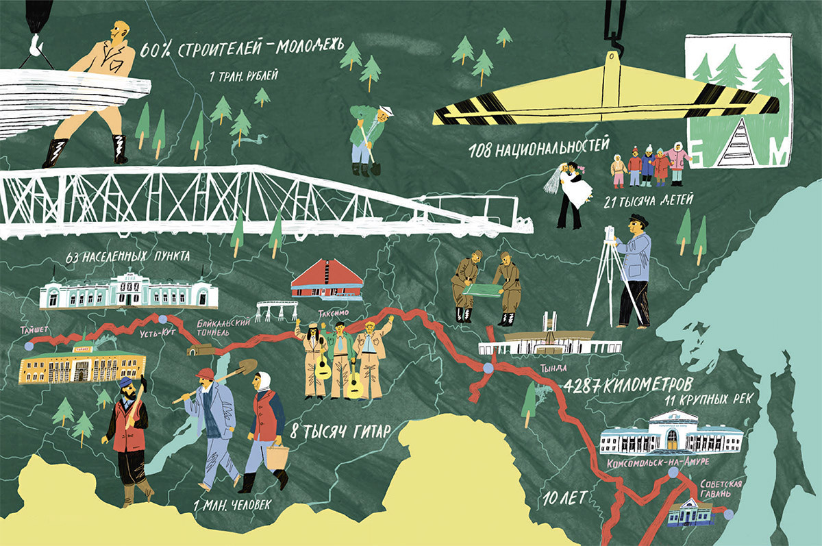 10 лет длился основной этап строительства Байкало-Амурской магистрали. Отсчет принято вести с апреля 1974 года, когда на XVII съезде ВЛКСМ БАМ был объявлен ударной комсомольской стройкой. Символически (но не фактически) строительство завершилось в октябре 1984-го — тогда было уложено «золотое звено» магистрали, объединившее ее западную и восточную части.