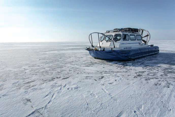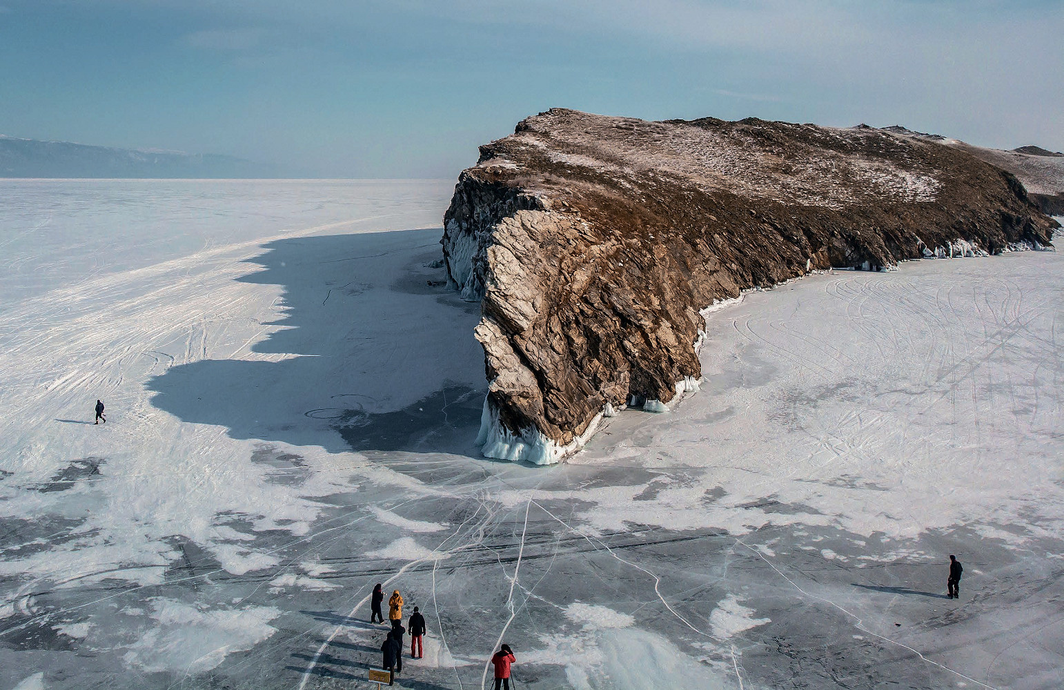 Как известно, зимой на Байкале есть лед. И по нему гоняют на всем, на чем можно разогнаться: на хивусах — катерах-амфибиях, на автомобилях, квадроциклах, собачьих упряжках. Энтузиасты долгих походов пересекают озеро на коньках, таща за собой сани с самым необходимым. На льду устраивают фотосессии, изо льда строят пирамиды и делают бокалы для красивого антуража вечеринки. Каким только не бывает лед на Байкале! Можно увидеть пузырчатый, с застывшими шариками воздуха, или потрескавшийся кракелюром. Длинные трещины появляются с таким грохотом, что кажется, будто в небесной канцелярии пускают фейерверки. А еще есть торосы — похожие на разбитые стекла куски льда у берега, и сокуи — застывшие наплески у мыса Хобой и острова Харанцы. Но все это туристические забавы. Самое безлюдное пространство на Байкале — Чивыркуйский залив, который омывает полуостров Святой Нос. Там много бухт с легко запоминающимися названиями — Окуневая, Молодость, Крутая, Омулевая. Но ехать надо прямиком в Змеевую, где бьет горячий источник, в котором можно погреться, наслаждаясь видами на озеро Байкал.