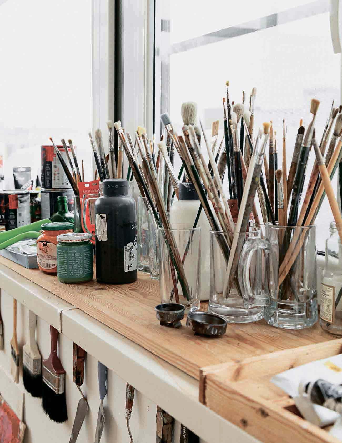 Это не первое его загородное жилище. Раньше у Дмитрия с женой был дом в деревне Фенино под Гжелью. Когда дети были маленькие – а у Гутовых их трое, – их надо было куда-то вывозить на лето. А больше ни для чего этот дом и не годился. «Сами понимаете, изба и люди», – печально разводит руками Гутов. Вообще, с мастерскими ему не слишком везло. Долгое время он снимал у знакомого художника комнату на Кузнецком Мосту, быстро ставшую чем-то вроде проходного двора. Не было человека, который бы, приезжая в Москву, не заглянул в мастерскую к Гутову или, проходя мимо, не зашел выпить. Дмитрий, человек воспитанный, светский, любящий принимать гостей, отказать никому не мог. Поэтому его мастерская быстро приобрела статус модного московского клуба. Впрочем, это уже было время относительного благополучия, а вот в 1990-е годы Гутов узнал, что такое настоящий жесткач. Денег не было, работы никакой, хоть в дворники иди. Интересуюсь, как же он выживал...