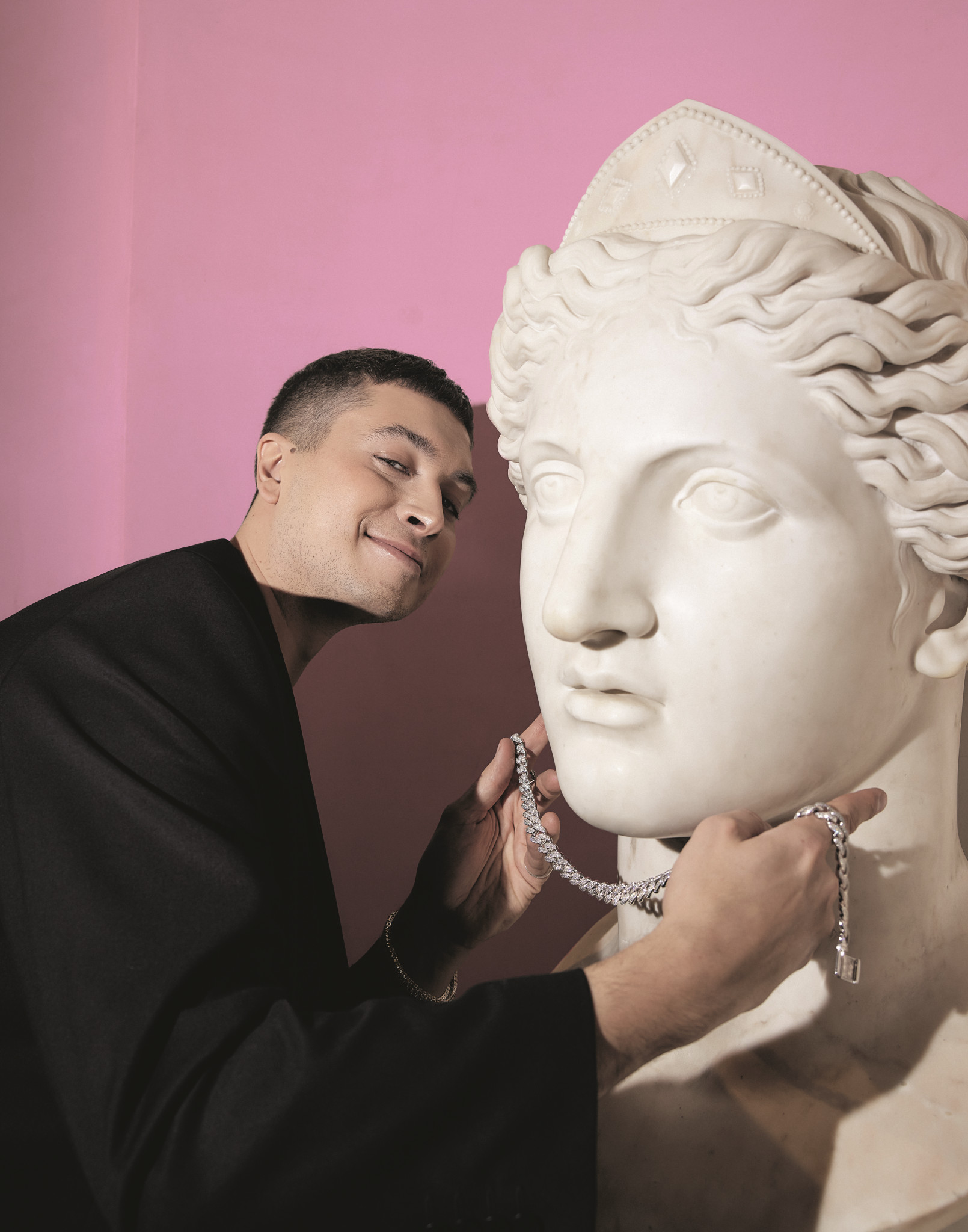 Дмитрий Кузнецов озолотил всю рэп-индустрию: редкий мастер речитатива не сверкнет перстнем, подвеской, а то и гриллзами Mozi J. Тем временем в очередь на коллабы с ним уже записываются блогеры-миллионники (от Инстасамки до Дины Саевой), супергерои локального стритвира (от «Питерского Щита» до Steno515) и модные художники с уличным уклоном (от арт-истеблишмента вроде Покраса Лампаса до пылкого аутсайдера Макса Борисова), собираясь в комьюнити (недюжинной медийной силы!) по культурно-ювелирным интересам.