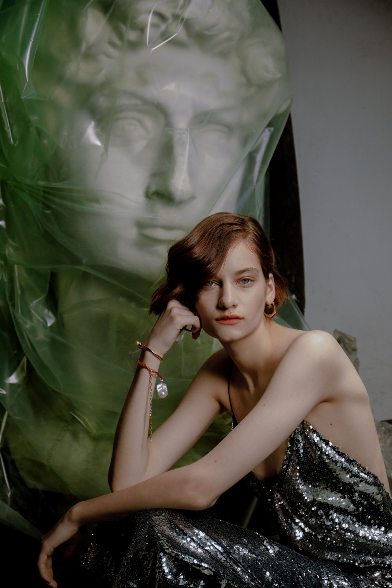 «Посмотрите истории российских звезд в моделинге — все девушки выделялись какой-то трагедией в биографии, внутренним надломом — это наше все, “Russian culture is so dramatic!”, любят повторять на Западе — либо они из интеллигентных семей, которые дают хорошую культурную базу своим детям», — объясняет Руслан Кожиев, агент Aurora Models. У Болотиной семья не просто интеллигентная — выдающаяся. Один прапрадед — священномученик, другой — подполковник царской армии, казенная квартира которого занимала до революции весь этаж дома на Большой Конюшенной, 2. Брат-близнец Александр — пианист, резидент Summit Music Festival в Нью-Йорке и Фестиваля Шопена в Ноане. Такую генетику чувствуешь даже по глазам — многие клиенты отмечают, что финальный взгляд в конце прохода Алины по подиуму завораживает зрителей.