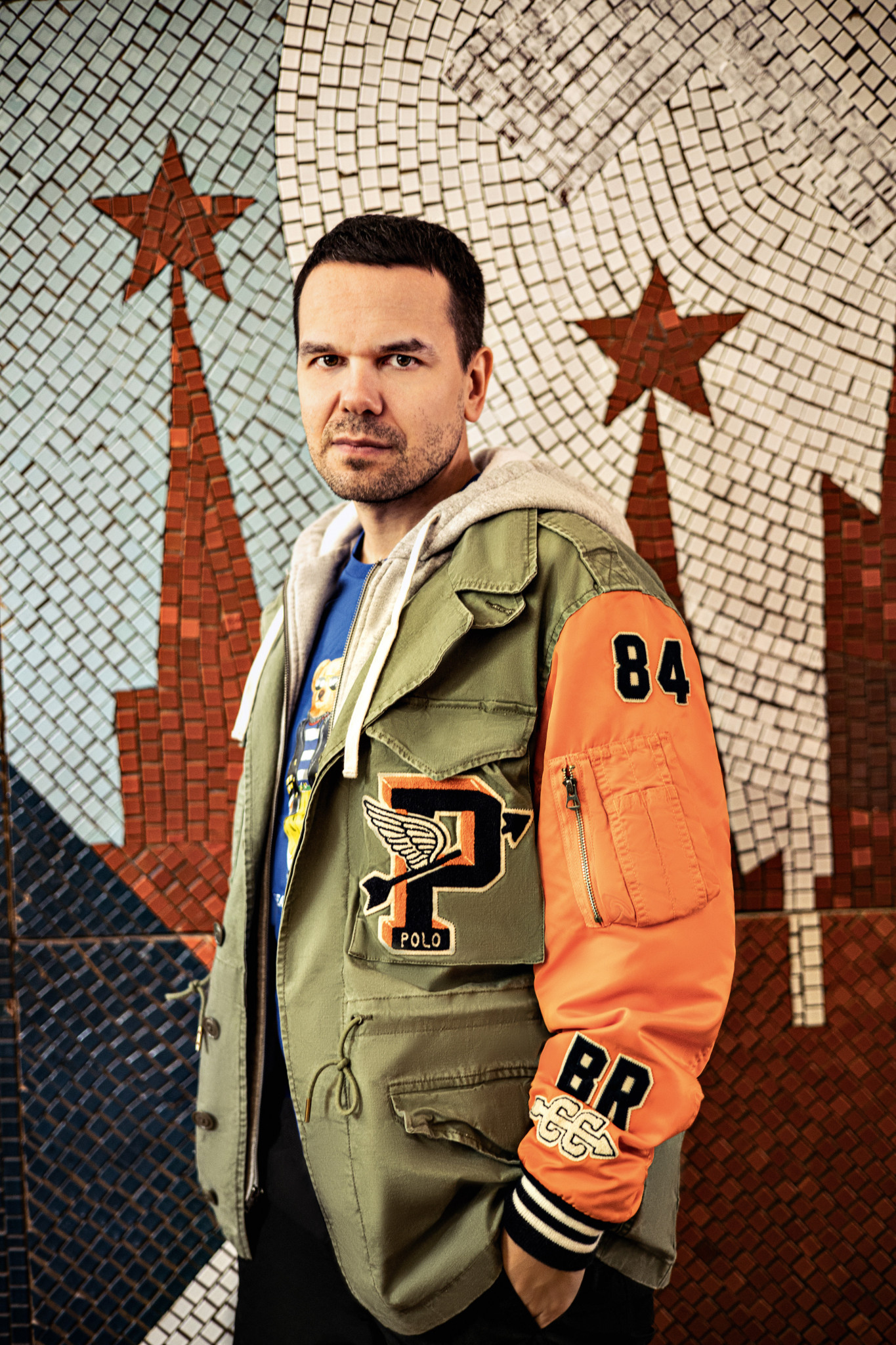 Ярослав сфотографирован на улице Александра Солженицына возле открывшегося на днях бара Intelligentsia (от создателей бара Sur). Футболка и бомбер Ralph Lauren (все — tsum.ru)