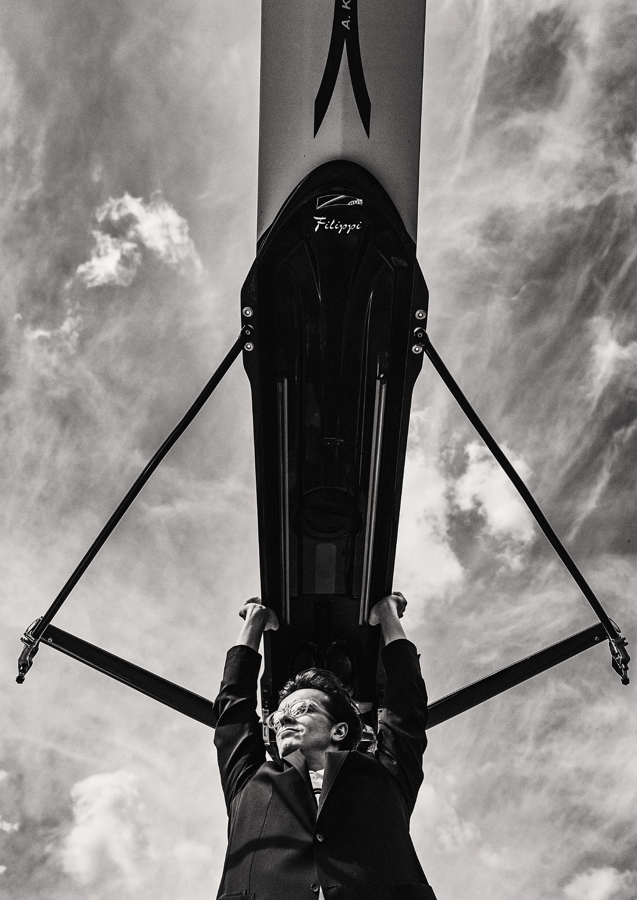 Арсений сфотографирован в Английском (и первом в Санкт-Петербурге — основан в 1864-м!) гребном клубе Arrow на Крестовском острове среди деревянных «Викингов» и спортивных гоночных лодок для академической гребли. В июне идем сюда на вечеринку «Девушка с веслом» в честь скульптуры советской спортсменки, которая прежде стояла на безымянном острове, но была сохранена и отреставрирована членами клуба. Костюм Z ZEGNA, поло GIORGIO ARMANI, туфли BARRETT (Babochka), очки IZIPIZI («Дом Мод»)