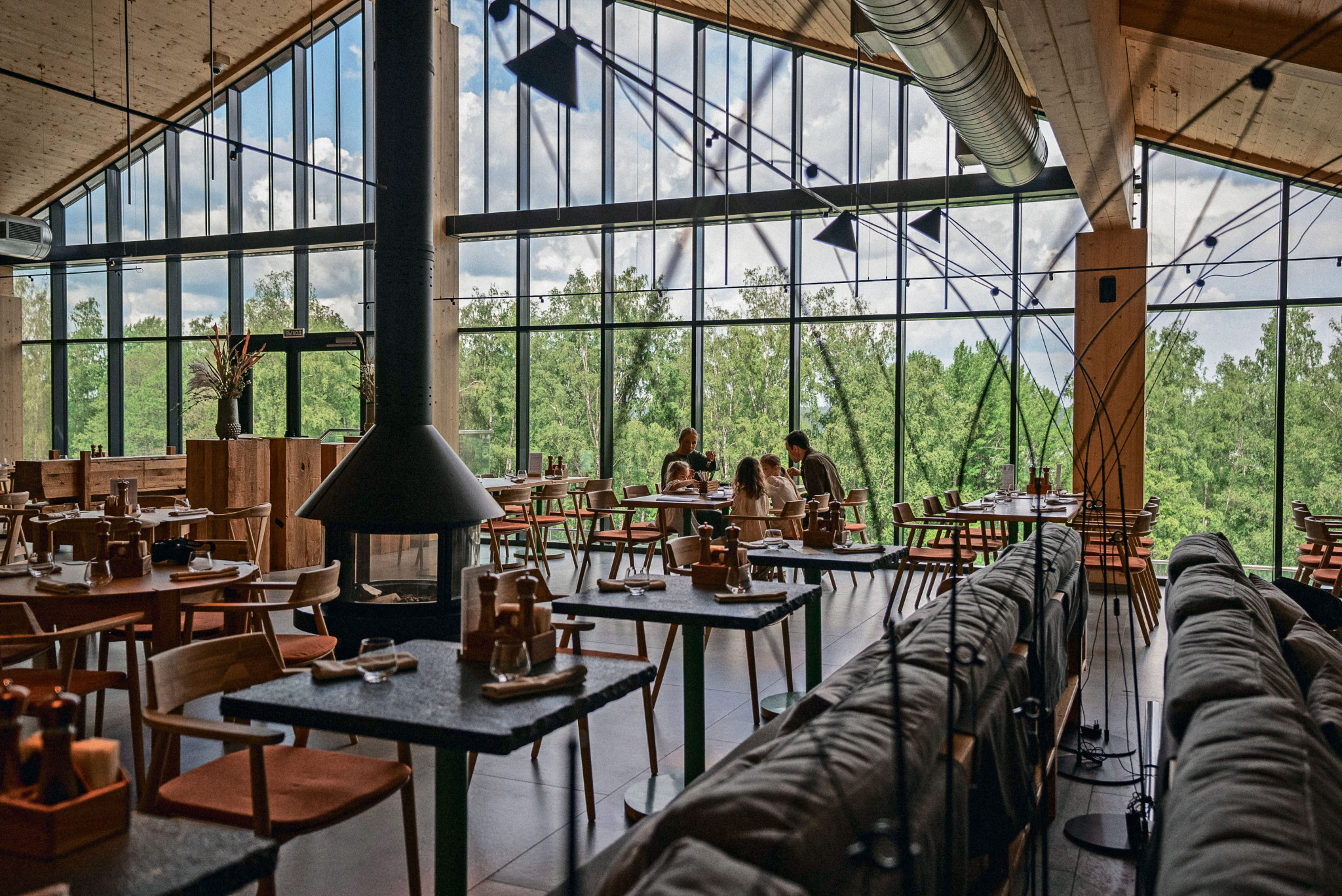 Завтрак в ресторане Marja — это суперфуды Карельского перешейка и сырники из фермерского творога с морошковым вареньем буквально в лесу: вот сосны шумят за панорамным окном во всю стену. Ужин — у камина: тартар из оленины, бефстроганов из фермерской говяжьей вырезки с белыми грибами и пряным пюре, детям — нордическая пицца и котлетки. Для тех, кто исповедует ЗОЖ, есть целое кафе Mansikka с травяными чаями: включаем терапию северными антиоксидантами на полную и берем черный саган-дайля (факт о его происхождении добавляет плюс 100к терпкому вкусу — он растет в самых непроходимых лесах Бурятии, Якутии и Забайкалья).