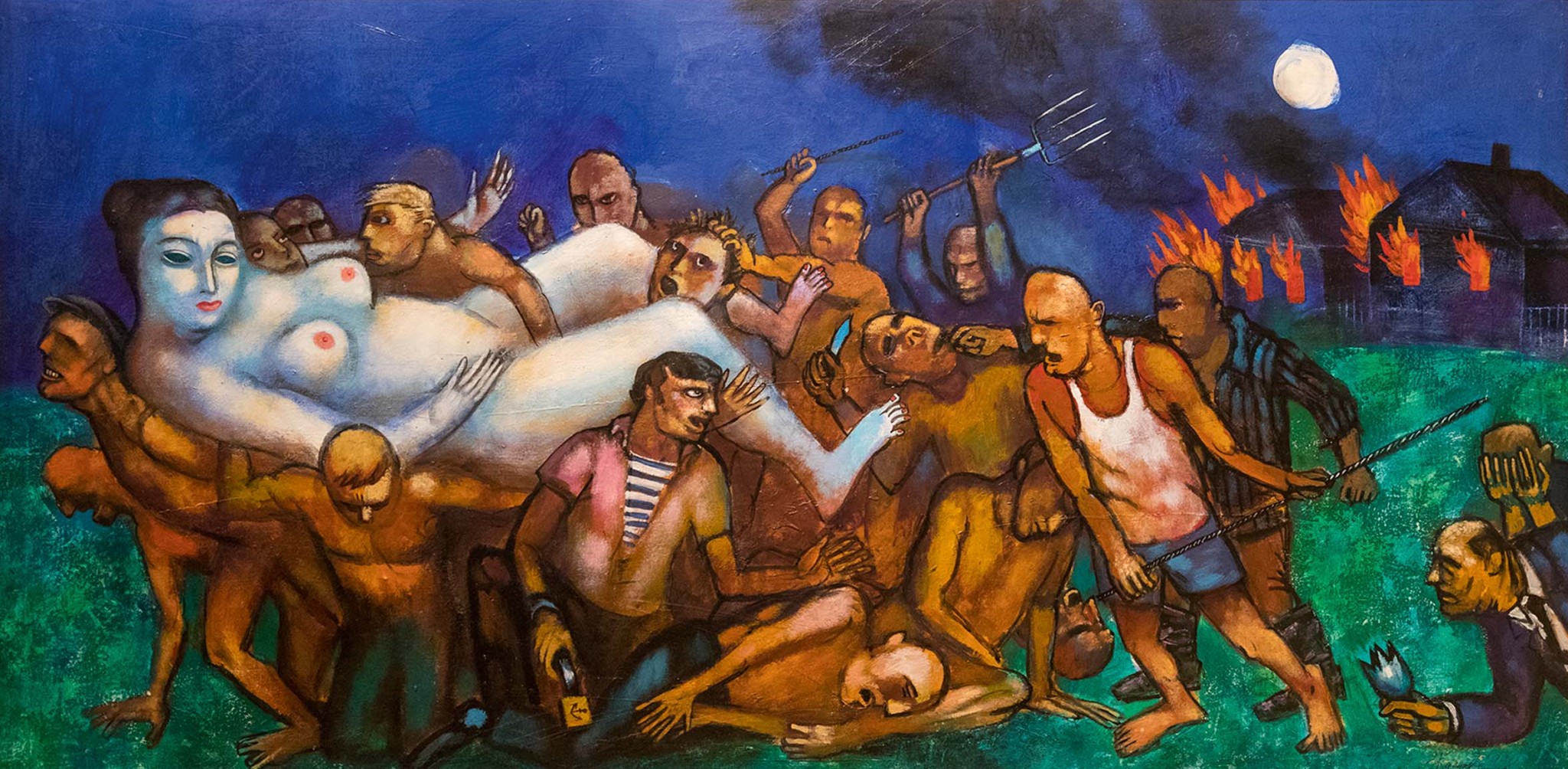 «Идея музея современного искусства возникла у Анатолия Собчака в начале 90-х —так в ЦВЗ “Манеж” появился специальный отдел по формированию коллекции, куда закупали и получали в дар работы самых актуальных на тот момент художников, в том числе с Пушкинской, 10», — вспоминает директор МИСПа Марина Джигарханян, которая 29 лет назад сама собирала по мастерским хайлайты коллекции: от Бориса (Боба) Кошелохова и Владимира Шинкарева до Тимура Новикова и Сергея Бугаева (Африки).