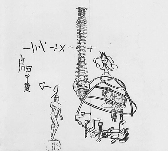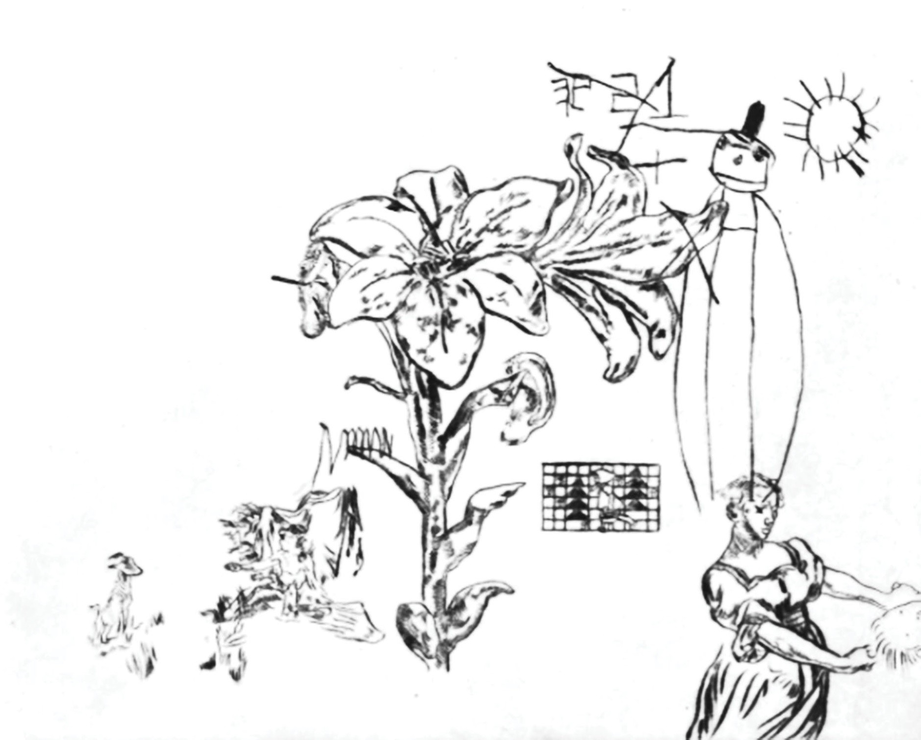 Я собрала графическую серию «Ребусы» из образов на фотографиях из семейных поездок и открыток. У меня огромное количество коробок, наполненных такими архивными материалами, — это мой визуальный багаж. Когда я пытаюсь комбинировать образы на листе, я думаю: «Мне нужно что-то особенное». Потом вспоминаю, как была в Антверпене, в соборе на главной площади, там висит работа Рубенса с Иисусом — вот его ногу я и хочу нарисовать. Я копаюсь в своей памяти, пытаюсь установить между как будто не связанными объектами связи.
