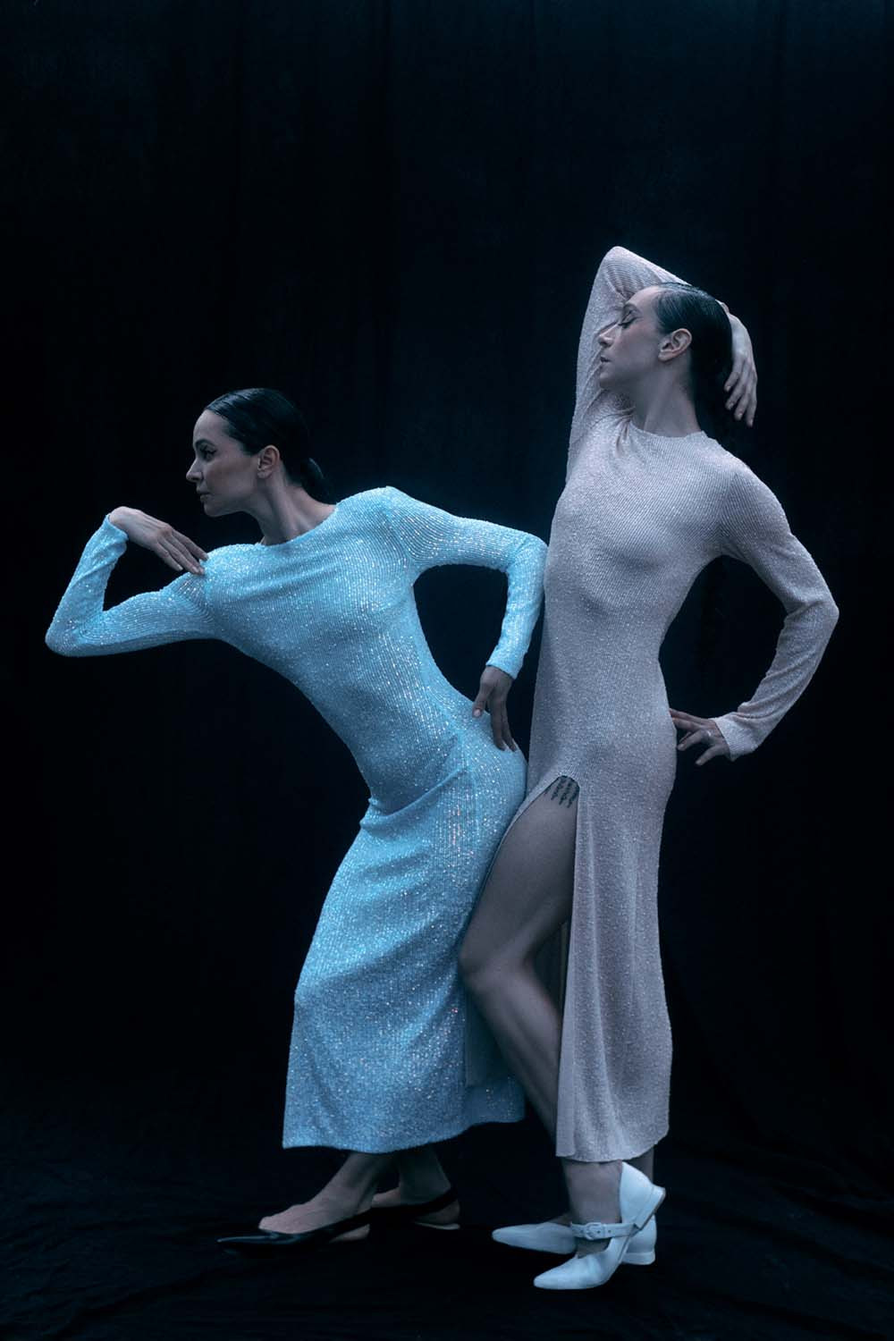 Мы возникаем на сцене как две архетипические фигуры из ниоткуда, вне времени и вне места. Это подчеркивают наши костюмы — они настолько закрыты, что мы будто в коконах, где видны только лица. Кстати, все костюмы сшила чудесная модельер Светлана Тегин — это ее первая работа для балета. Вступая в резонанс, наши героини начинают постепенно снимать с себя все доспехи, в том числе ментальные. Люди ставят себе многослойные защиты, потому что боятся открыться миру и друг другу, чтобы не испытать боль. Но парадокс в том, что, не познав боль, ты не узнаешь любовь. Взаимодействие с другим человеком реально может тебя трансформировать, причем иногда через ломку. Но чем она болезненней и негативней, тем больший толчок будет дан для внутреннего роста. Паша работает в технике контемпорари, у него нет классических движений. Наш танец в какой‑то степени похож на контактную импровизацию. После дуэта мы разделяемся и начинаем двигаться синхронно. Собственно, мы и сочиняли это произведение интуитивно. Диана в силу своей занятости подключилась уже на этапе совместных репетиций, а я была по сути материалом для хореографа, пыталась быстро реагировать на задачи телесным ответом. Пару дней назад на репетиции Паша заметил: «Ты прямо на глазах становишься контемпорари-танцовщицей». Просто лучший комплимент. (Смеется.)