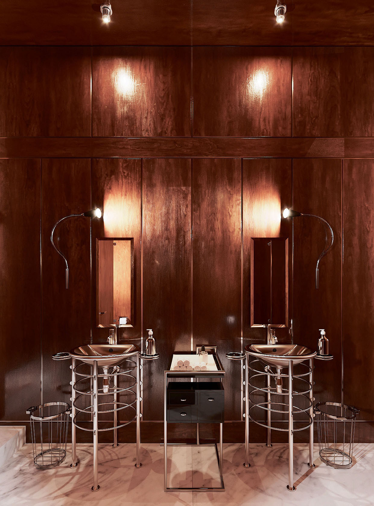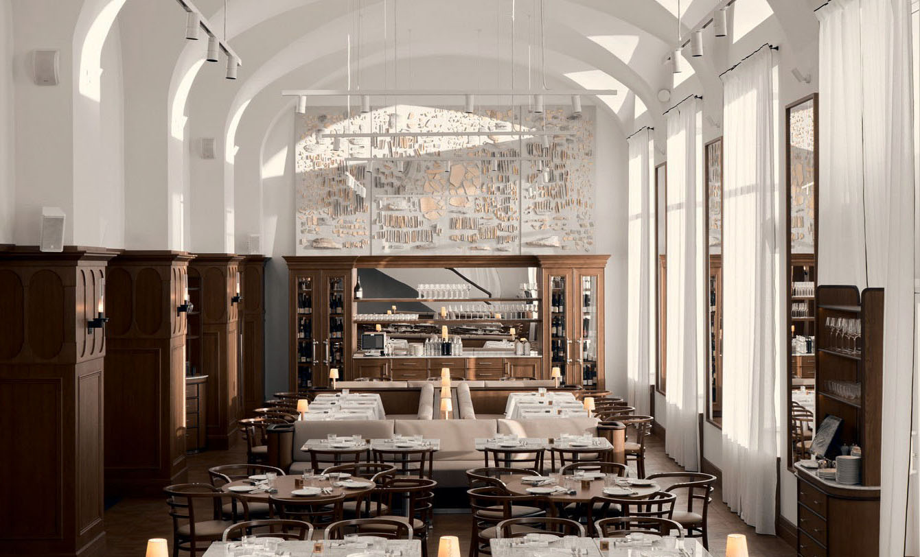 Совсем скоро откроется «Невский, 1» — проект московского ресторатора Александра Оганезова в бывшем здании Первого частного коммерческого банка. В роскошном атриуме — итальянский ресторан и винтовая лестница, которая ведет в сигарный клуб с видом на Зимний дворец, а еще огромное количество охранных обязательств и работа с КГИОП: многие элементы мы восстанавливали по архивным фотографиям. Проект уникальный по своему наполнению: винтажные кресла Joe Colombo и Carlo Scarpa, культовые барные столики Willy Rizzo, свет Viabizzuno. И сложнейшая отделка стен и потолков — великолепная работа мастерской Derevo Group.