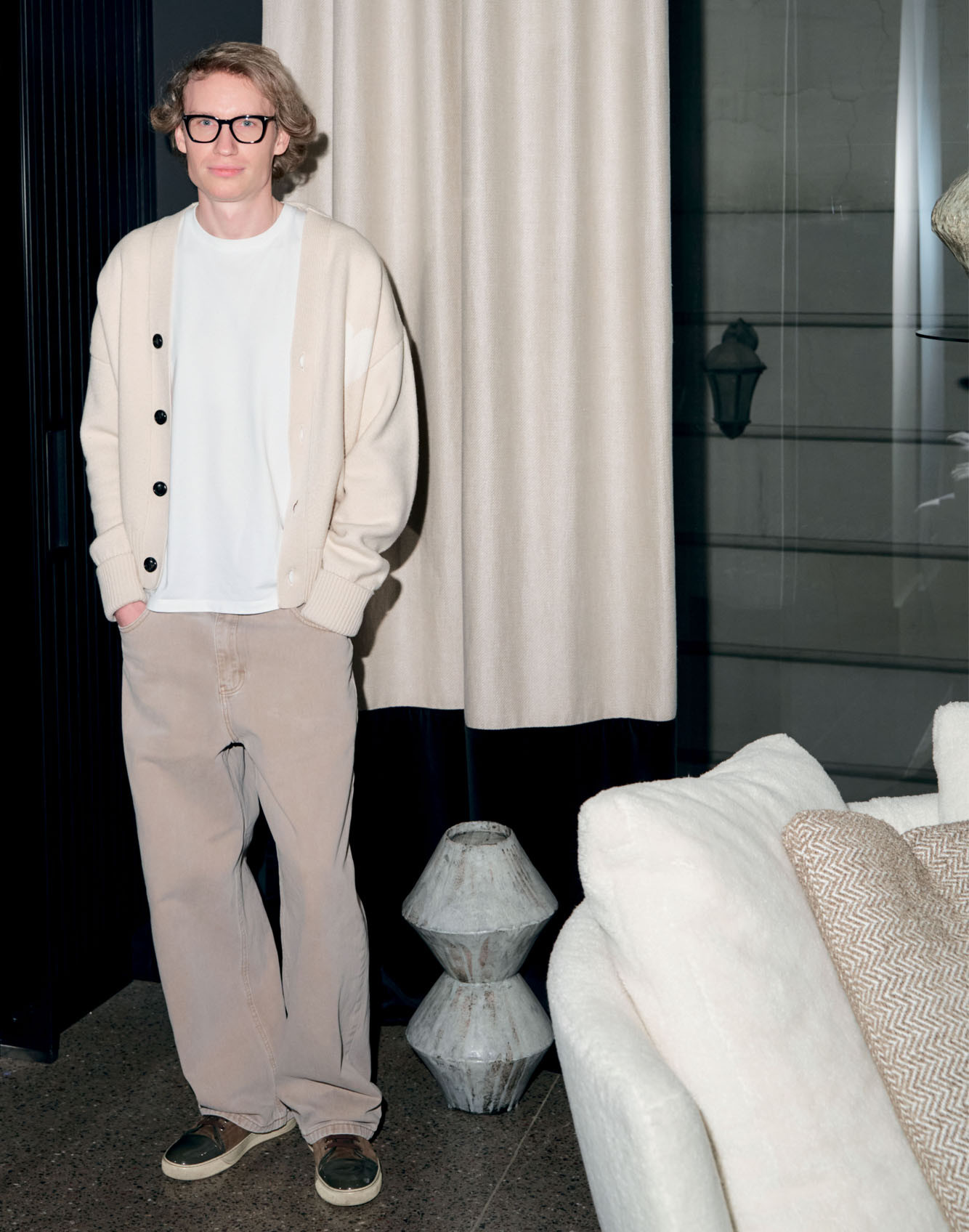 Адепт овала, ленинградского авангарда и мастер тихой выразительности, сооснователь Tol'ko Interiors Николай Колосков умеет выбрать для своих интерьеров лучший каст предметов коллекционного дизайна (Пруве! Ле Корбюзье! Сааринен!). Даже свою студию в бывшем флигеле АТС на Петроградской стороне он превратил в галерею с винтажными имзами и соттсассом.
