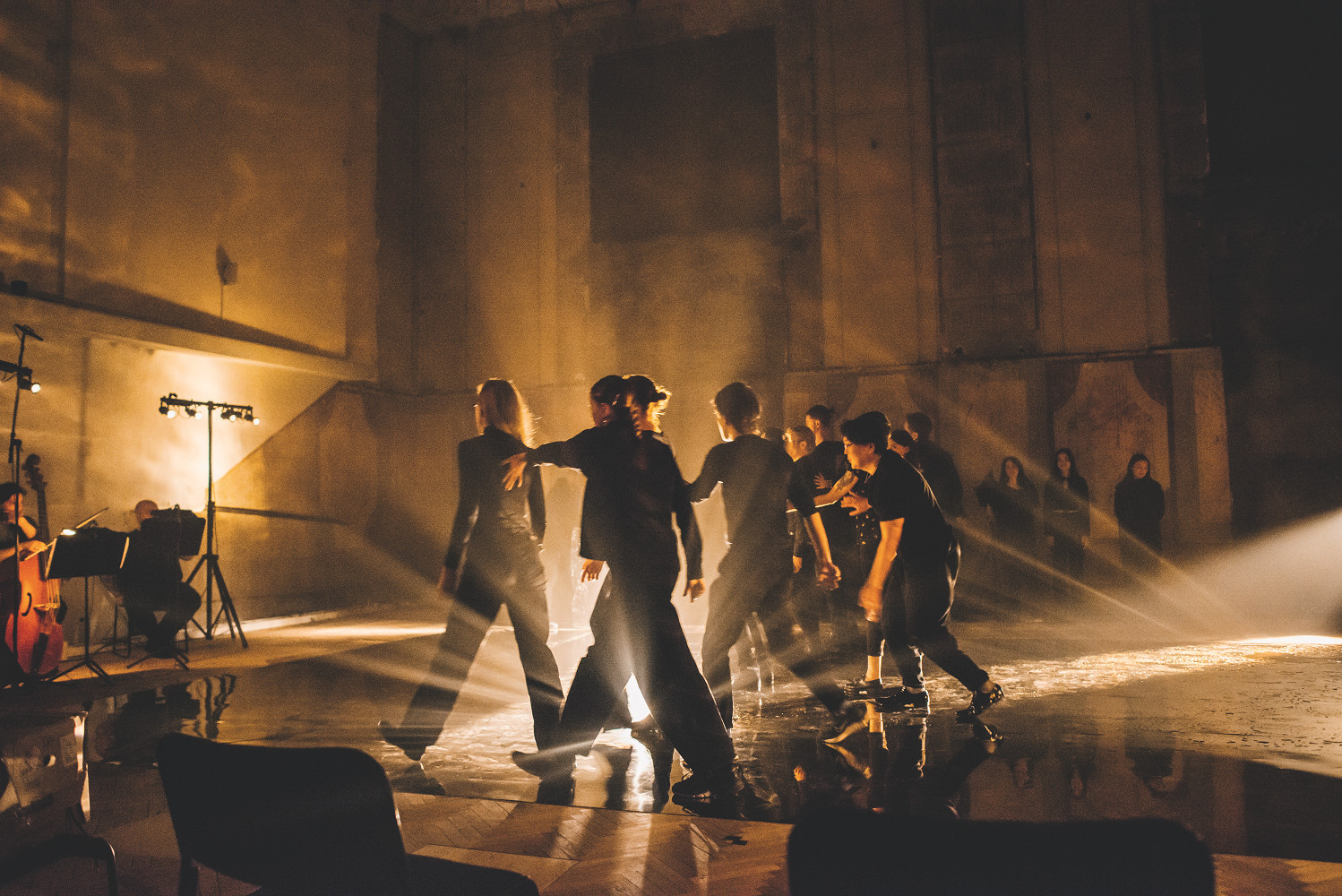 Это инициатива Теодора Курентзиса — сделать коллаборацию хора и нового направления MA Dance. Мне показалось, что надо расширить возможности художественного выражения, и мы пригласили Noir Films, команду видеохудожников, которая также работает в Доме Радио. Во время создания перформанса чувствовалось, что у всех нас было общее представление о результате, но каждый вносил что‑то свое. Звуковой художник Виктория Харкевич написала музыкальное интро, чтобы, переступая порог здания из уличного пространства, человек сразу погружался в совершенно другое состояние. Мы назвали его «ты один». Даже рассадка зрителей была задумана на расстоянии, чтобы не было возможности ни с кем пообщаться, дать себе шанс подумать и почувствовать. У нас была цель, чтобы слушатель остался наедине с музыкой и испытал чувства, которые невозможно пережить на обычном концерте или во время просмотра фильма.