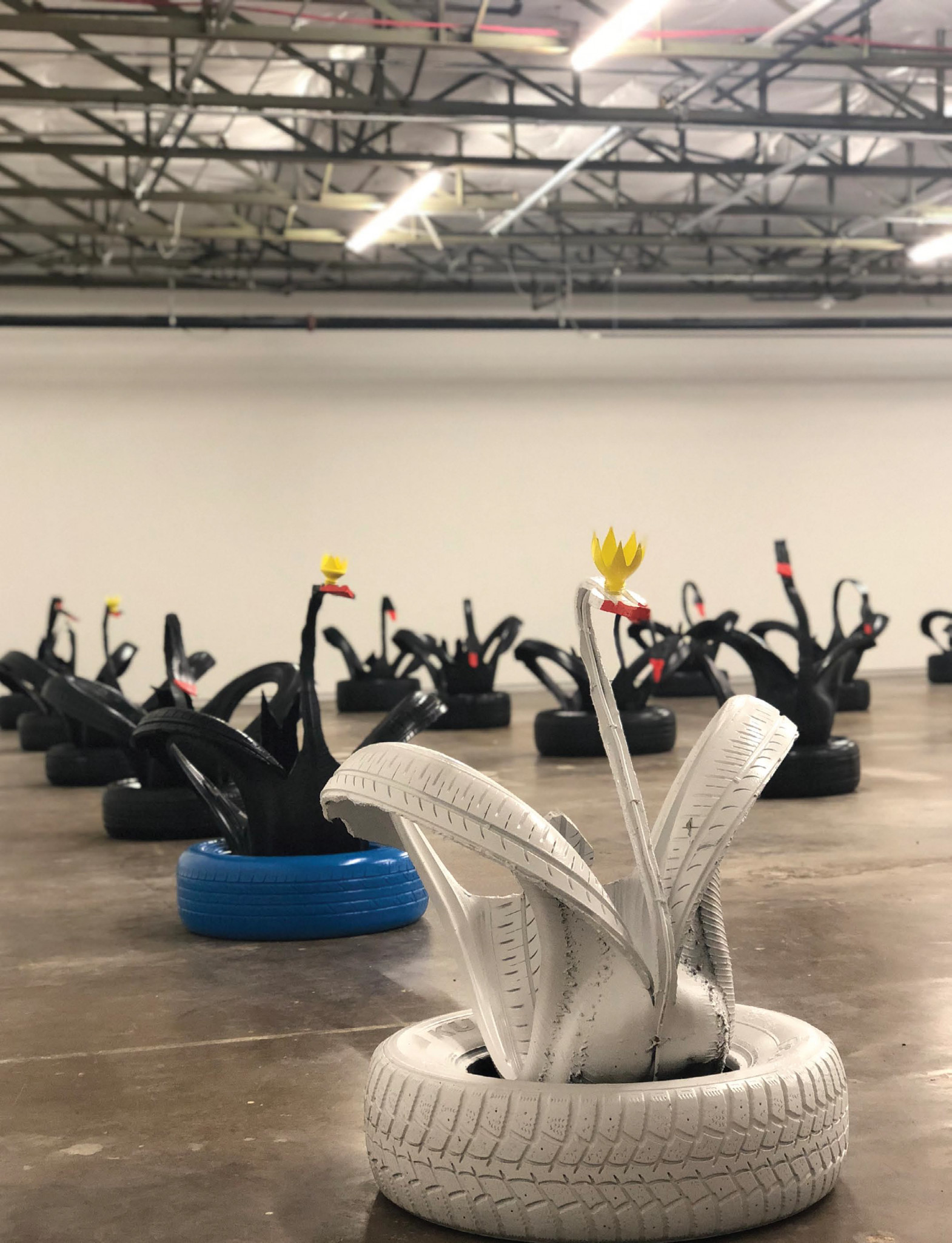 В Далласском музее современного искусства Гарри Нуриев показал инсталляцию из до боли знакомых русскому человеку лебедей из старых автомобильных шин, на Friezeв Майами — деревенские кружевные водостоки, превращенные в скульптуры, а для коллабораций с Balenciaga и Nike сделал прозрачную мебель, наполненную нераспроданной одеждой и кроссовками из стоков. В первом петербургском проекте архитектора — магазине ювелирного бренда Avgvst — пытливый взгляд краеведа угадает мотивы выборгской библиотеки Алвара Аалто.