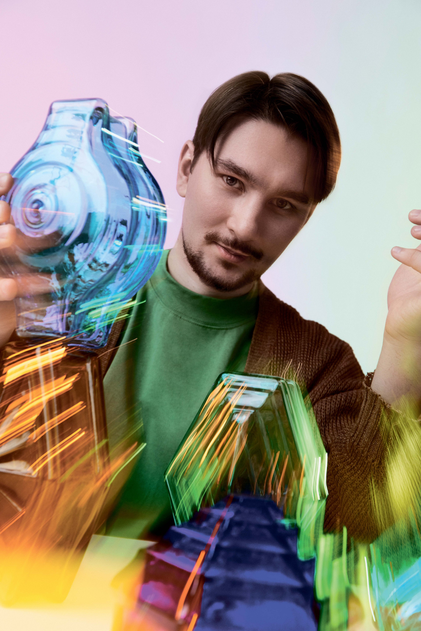 Я начал прорабатывать разные возможности: отправился к компаниям, которые занимаются стеклом (стекло не поддается реставрации, только склеиванию или воссозданию) — во всех местах мне озвучили внушительную стоимость и не давали гарантии. Нашел готовые примеры: кирпичи были с нечетким рисунком и неправильных пропорций. Тогда я обратился к Ивану Петровичу Козицыну, автору множества патентов в области стеклоделия, преподавателю технологии материалов в Академии Штиглица и Политехническом университете. Он такой современный Кулибин: экспериментирует со стеклом, керамикой и металлом, активно внедряет 3D-технологии, строит печи под разные технологические задачи. Однажды ему принесли разбитую полуметровую двуцветную скульптуру Daum из Музея стекла и хрусталя и попросили: «Сделайте копию!» Через пару месяцев она была готова. Еще он смог найти принцип, как воспроизвести диатрету — древнеримский сосуд-лампаду столь сложной формы, что непостижимо, как это могло быть сделано в I–IV веке н. э., с использованием при этом доступных тогда технологий, например, объемного моллирования в форму.