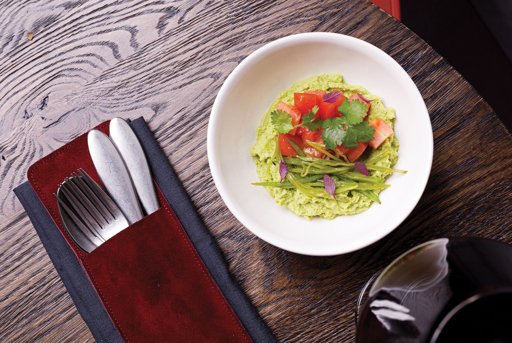 «Это оказалось очень тяжело! Я думал, что иллюзий по поводу фермерства у меня нет, но, когда столкнулся с реальностью, понял, что в моей голове была картинка из сказки», — признается Абрезов, рассказывая о том, как в течение полугода искал в Ленобласти фермеров и организовывал регулярные поставки продуктов. Процесс этот с запуском ресторана не прекратился, а только набрал обороты: сейчас шеф ищет поставщиков дичи и грибов на позднюю осень. Ну а пока — в сезон урожая — берите салат с разноцветными ароматными томатами от фермера Евгения из поселка Первомайское, запеченную амфорную капусту (такую под Лугой выращивает фермер Алексей), заказывайте рийет из печеных овощей со страчателлой и гуакамоле из зеленого горошка. Мясо и рыба в меню тоже есть: например, кролик с фермы «Родные ладони» в Ленобласти (это семейное предприятие также поставляет в ресторан молочные продукты), судак с картофелем и соусом из порея, говяжья грудинка с копченым пюре и карельская форель с фасолью. Другая гордость Commons — прогрессивная винная карта с коллекцией, насчитывающей больше сотни сортов, отобранных шеф-сомелье проекта Арсеном Вартановым. Поддерживая общую идею проекта, большинство бутылок происходят из небольших гаражных хозяйств. А карта для удобства поделена на семь разделов, каждый из которых посвящен определенной стилистике или географии вина — от органических и биодинамических марок до подборки автохтонов со всего света.