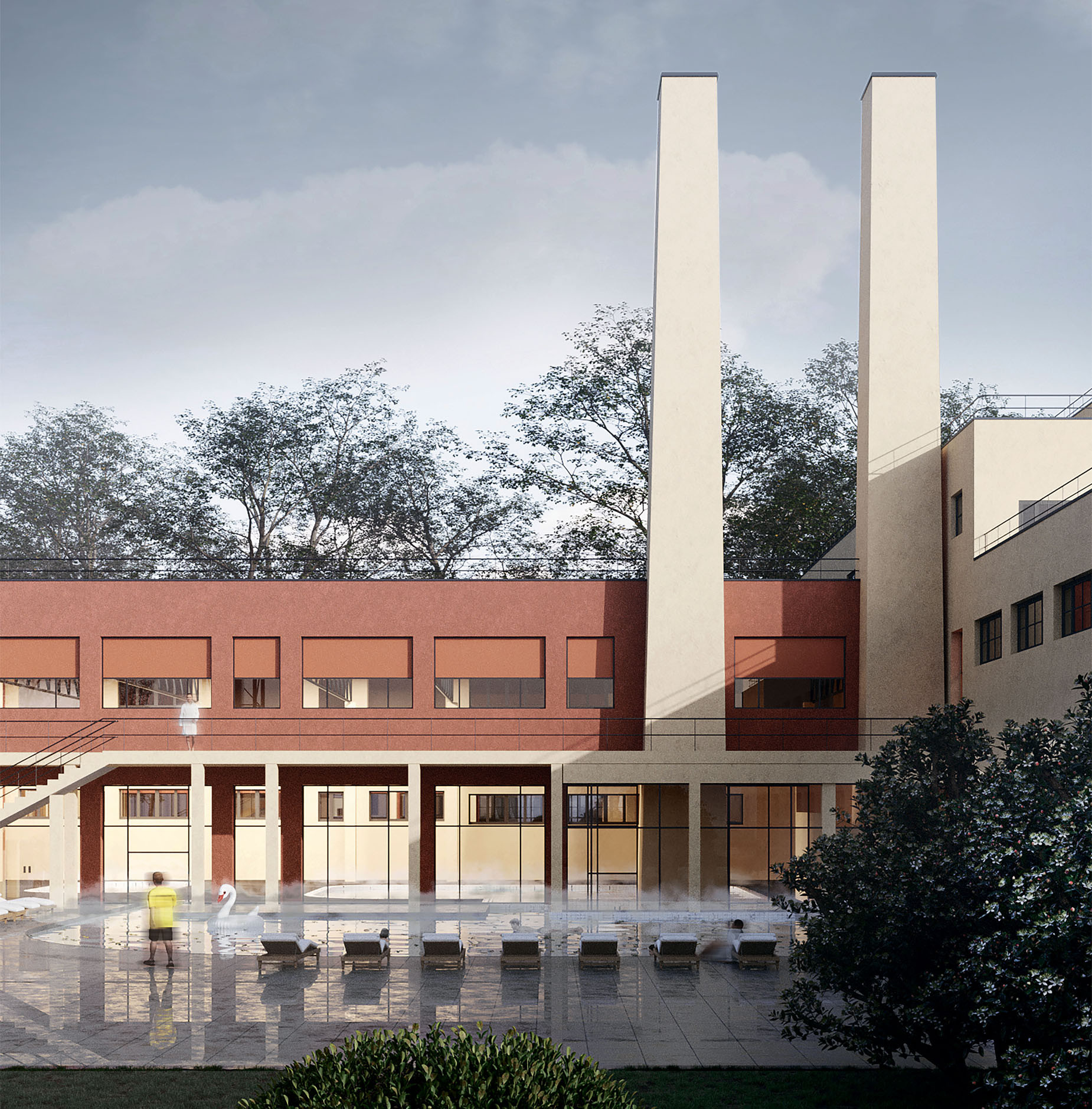 Да, они будут точно такими — мы сохраним и конструктивные решения, и отделку, и форму здания, и конфигурацию помещений. На улице появится комплекс подогреваемых бассейнов под открытым небом, и вот они уже будут построены по современному проекту, их просто раньше не было. Для бассейнов, кстати, придется возводить новую газовую котельную. Старую котельную 1930‑х годов мы укрепим и сохраним, но только в качестве экспоната.