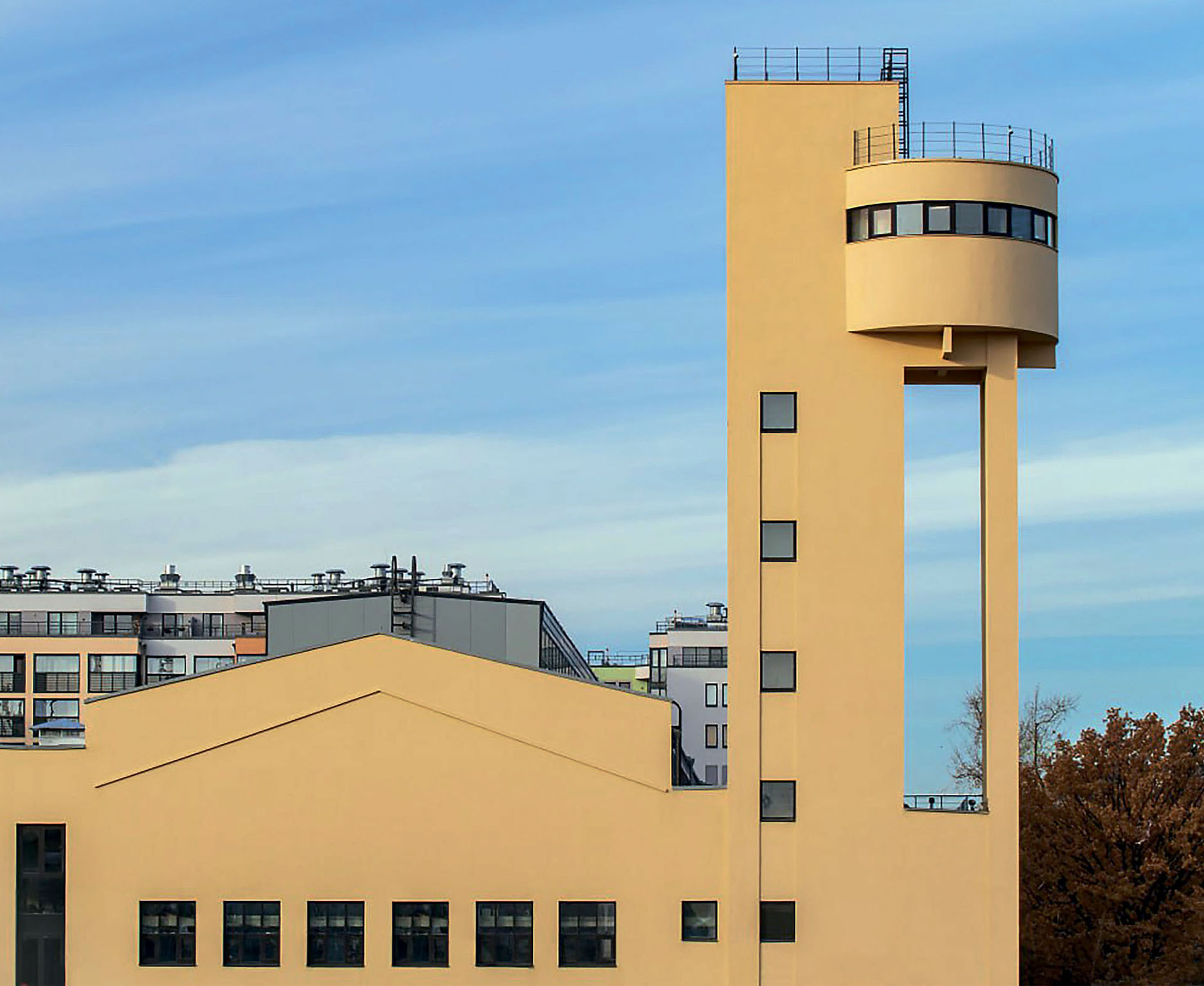 Башня Чернихова оказалась очень сложным объектом. Мы сделали там фактически не реставрацию, а реконструкцию. Вообще, никогда не говорят про реконструкцию памятников, но тут уникальный случай. Воплощенный великий замысел, от которого не так много сохранилось: изначально в 1930‑е годы здание не достроили по проекту Якова Чернихова, и его заканчивали совсем другие люди. Многие авторские задумки проигнорировали из-за экономии. Качество материалов тогда было низкое. В конструкциях применяли гладкую арматуру, которая во многих узлах просто заржавела, и сам бетон очень плохой. Крышу устроили из деревянных ферм, она обрушилась в годы Великой Отечественной войны. Другого способа вернуть здание к жизни, кроме как разобрать его и собрать заново, у нас просто не было. Мы сохранили фасадную стену, сохранили объем самой водонапорной башни, а также блок, ближайший к башне. Вместе с тем дворового фасада у здания фактически не было, к этой стене вплотную был пристроен второй цех, не сохранившийся до наших дней. Мы придумали фактически новый фасад, используя в качестве образцов стены других советских конструктивистских зданий.