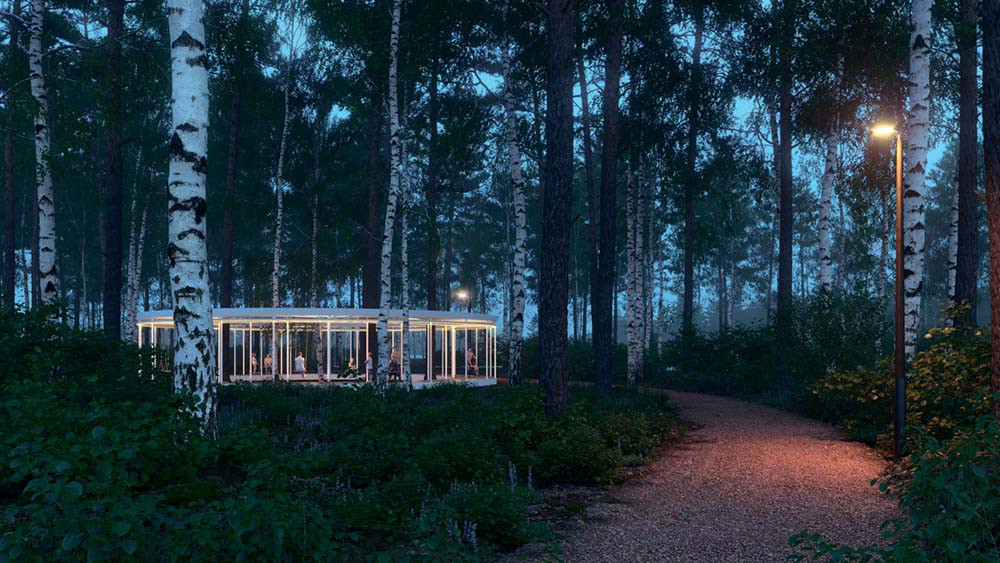 В петербургском Пейзажном парке нужно в первую очередь сделать в лесу удобные дорожки, чтобы были, например, подходы к воде. Мы предлагаем, кроме этого, сделать какие-то места, где люди могут встречаться и собираться — беседки, кафе, площадь, на которой можно устраивать небольшие соседские праздники, ставить елку на Новый год. На этой довольно лесистой территории уже существует просека, где деревья были вырублены некоторое время назад, и вот на ней мы сможем разместить активные функции, для которых нужно свободное пространство. Все остальное мы превратим в лесопарк, где можно бродить, укрыться под навесом от дождя, дойти до речки Охты — немножко такой буколический образ мы себе представляли.