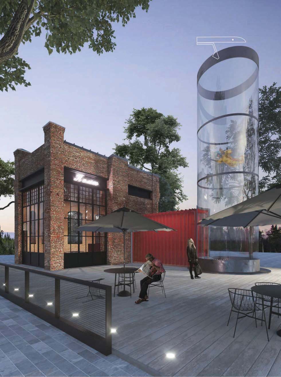 Мы вернулись в Россию 30 августа, а 1 сентября я повела старшего сына в первый класс. Мы шли в школу через бульвар Науки — плиты годов 1960-х, торчащие куски арматуры и лужи. Я торопилась, упала и порвала любимые брюки. И подумала, что невозможно же так жить: мой ребенок будет 10 лет ходить здесь каждый день и смотреть на весь этот ужас. Так первым моим проектом стал бульвар Науки — я сама занималась его разработкой. Когда я пришла, у администрации уже были планы на эту территорию, но это был адский ад — две дорожки с гипсовыми орлами. Я сказала сразу, что так делать нельзя, и села рисовать эскиз. В городе есть институт ядерной физики, мощный научный кластер, от этого мы отталкивались. На асфальт нанесли полосы в виде печатной платы — и люди, как электроны, движутся по ней. Идея в том, что это информационная река — она собирает и разводит гуляющих в разных точках. Мы продумали световые сценарии для вечера: подсвечены велодорожки, есть световые качели и подсветка у скамеек. В этом году мы будем реализовывать второй этап: бульвар станет органично включен