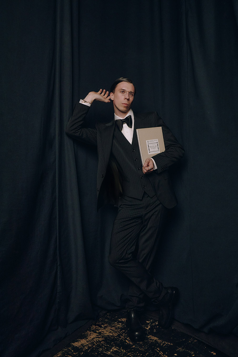 Максим Петров. На Максиме: пиджак, жилет и брюки Dolce & Gabbana, рубашка и бабочка Tom Ford (все — ДЛТ), пенсне ReFaced