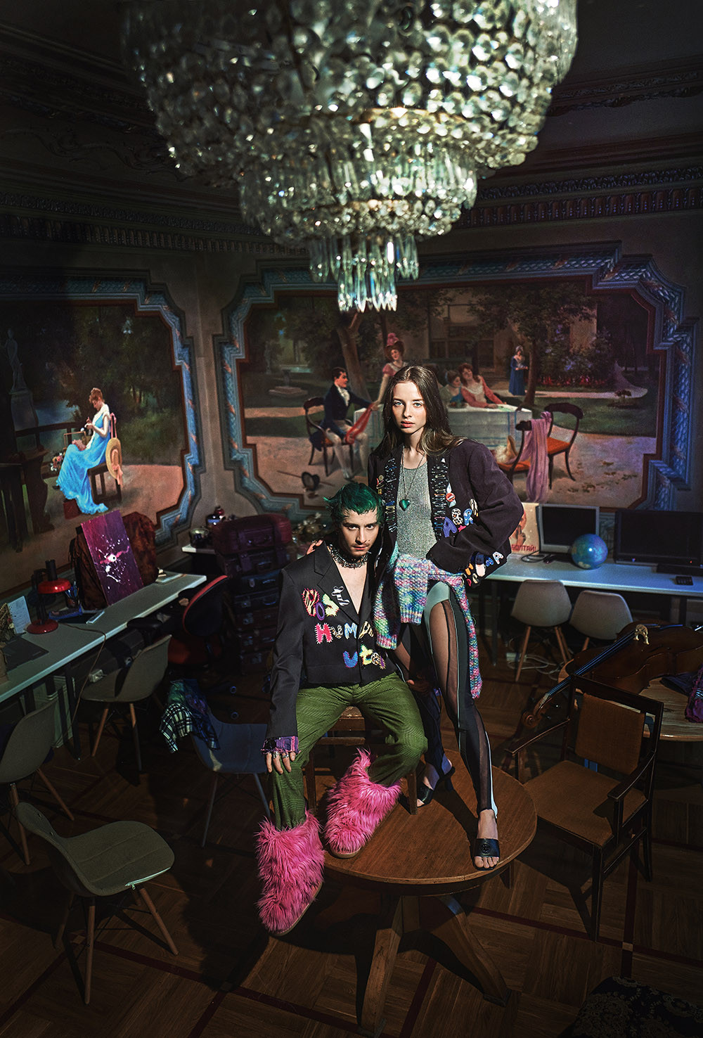 Дима: Мы, художники, должны прививать людям новое мышление, иначе мир погрязнет в экологической катастрофе. И ты сама видишь — у нас получается! Каждый раз, когда я оказываюсь в магазине, думаю: «А куда это все денется, если не продастся? Как сделать, чтобы одежда в обязательном порядке отправлялась на переработку?» Мы живем здесь и сейчас — и должны действовать. Кто, если не мы? Это важно. Я, например, не могу складывать каждый овощ в отдельный пластиковый пакет — это диссонанс какой-то.
