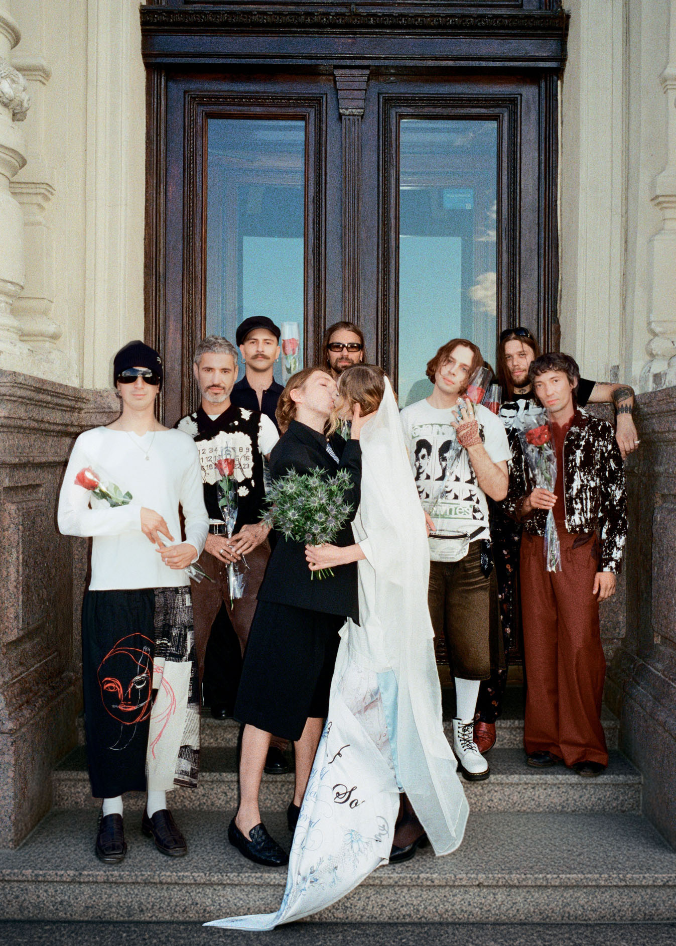 Подробнее о петербургских свидетелях (гест-лист мечты!): комик Илья Куруч — сверкающее вау, густой восторг и наш секси-тамада, Даниил Шульгин (или просто Шуля) — диджей, фаундер макабр-бренда Stenosis и городской фэшн-тотем, Ваня Ильинский — стрит-артист и найденный брат-близнец Шули, сын рейва и экс-модель Enfants Riches Déprimés Тихон Бойко, художник и практик-ремесленник Дима Гусар, актер, автор 86 стишков и группы «Бомба-Октябрь» Вася Михайлов.